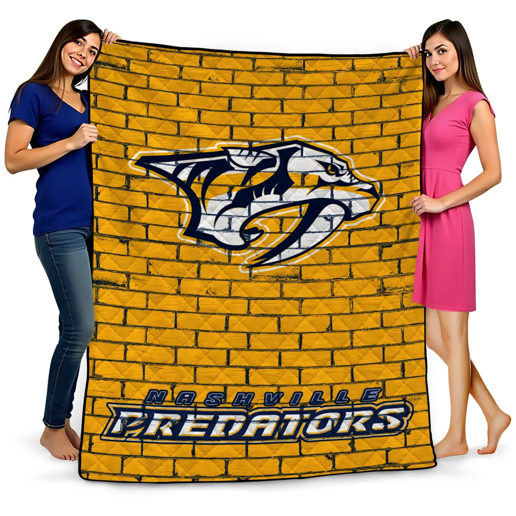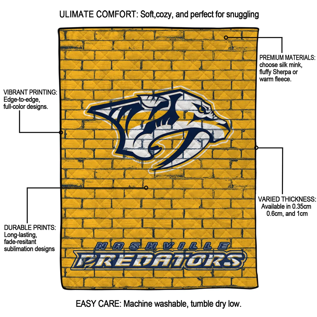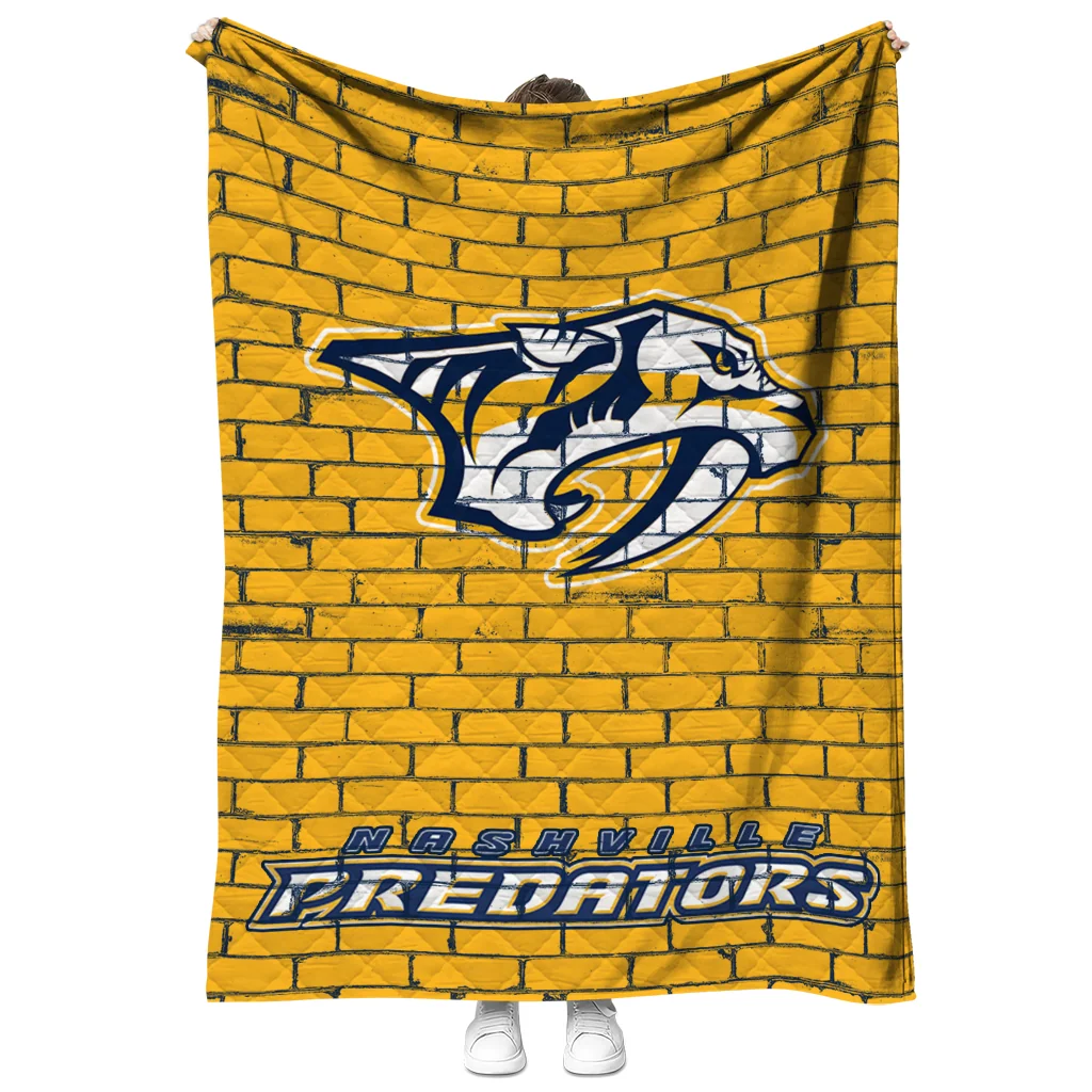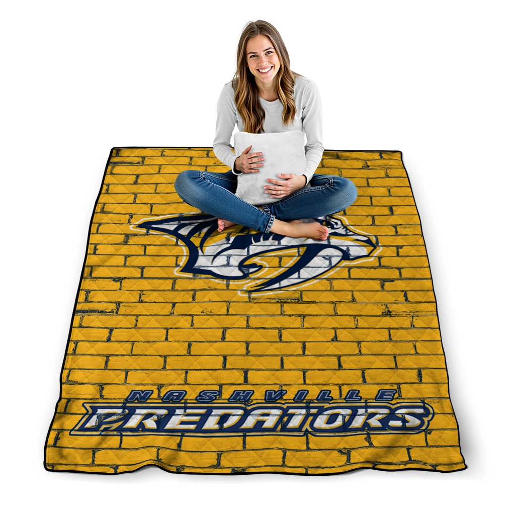 Wrap yourself in warmth and pride with the Nashville Predators Brick Grid Gold Quilt Blanket from the Nashville Predators Blankets collection at Yes That Blanket. Made from 100% premium quilting-weight polyester blended with a touch of microfiber, this quilt offers a smooth, soft finish you’ll love. Choose between two quilting styles—Stipple or Diagonal—and enjoy the comfort of a cotton-filled layer inside that adds extra coziness for every season. The border is available in classic black or white, giving your design a clean, timeless edge.