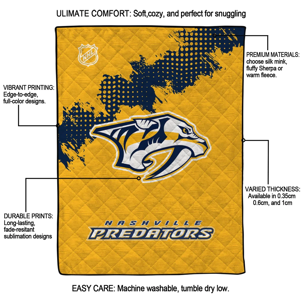 Nashville Predators NHL Shield Gold Quilt Blanket