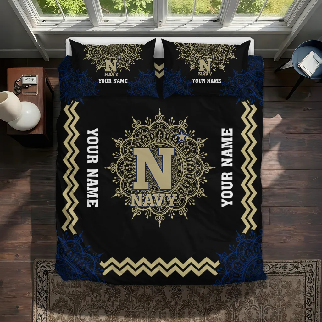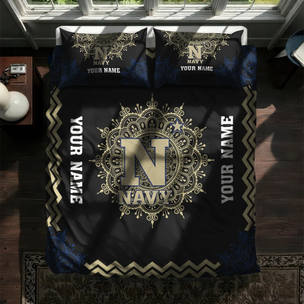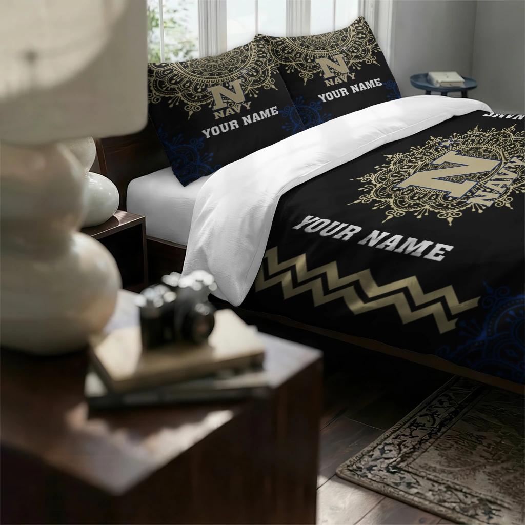 Navy Midshipmen Bedding Set – Custom Mandala Lacework Black Beige