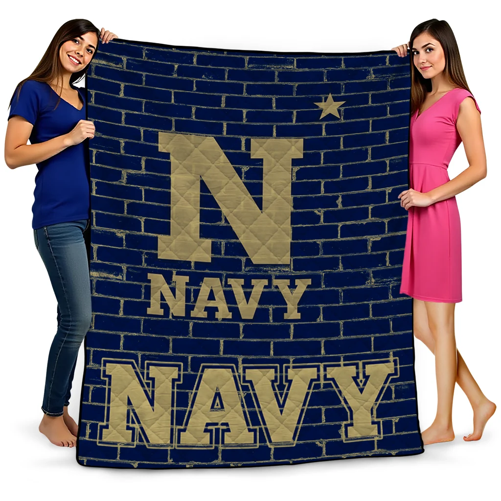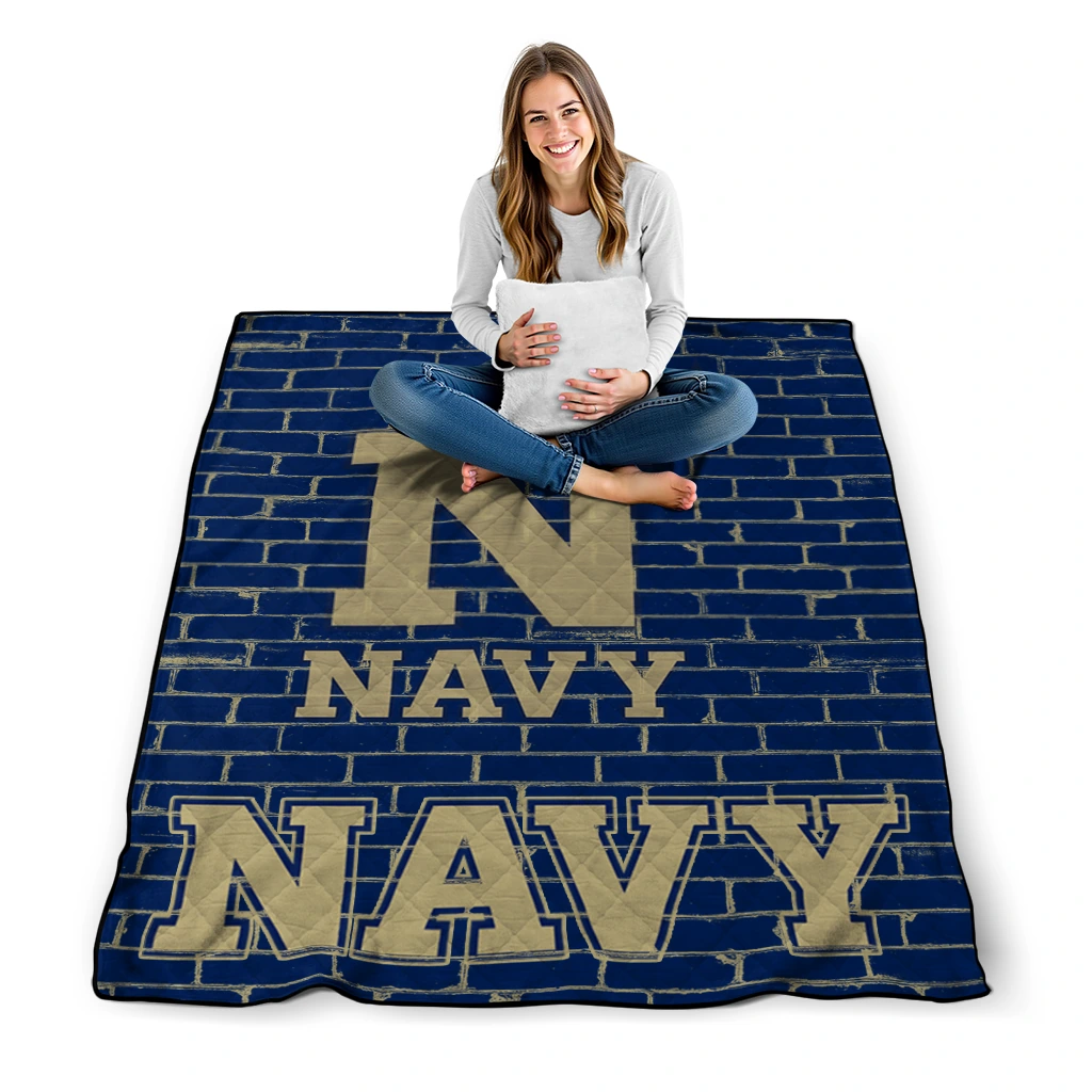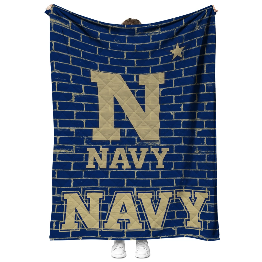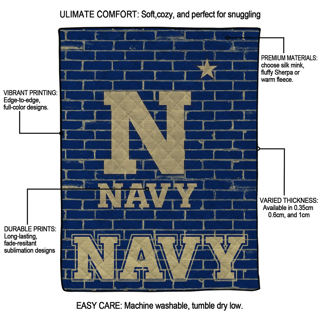 Wrap yourself in warmth and pride with the Navy Midshipmen Brick Grid Blue Quilt Blanket from the Navy Midshipmen Blankets collection at Yes That Blanket. Made from 100% premium quilting-weight polyester blended with a touch of microfiber, this quilt offers a smooth, soft finish you’ll love. Choose between two quilting styles—Stipple or Diagonal—and enjoy the comfort of a cotton-filled layer inside that adds extra coziness for every season. The border is available in classic black or white, giving your design a clean, timeless edge.