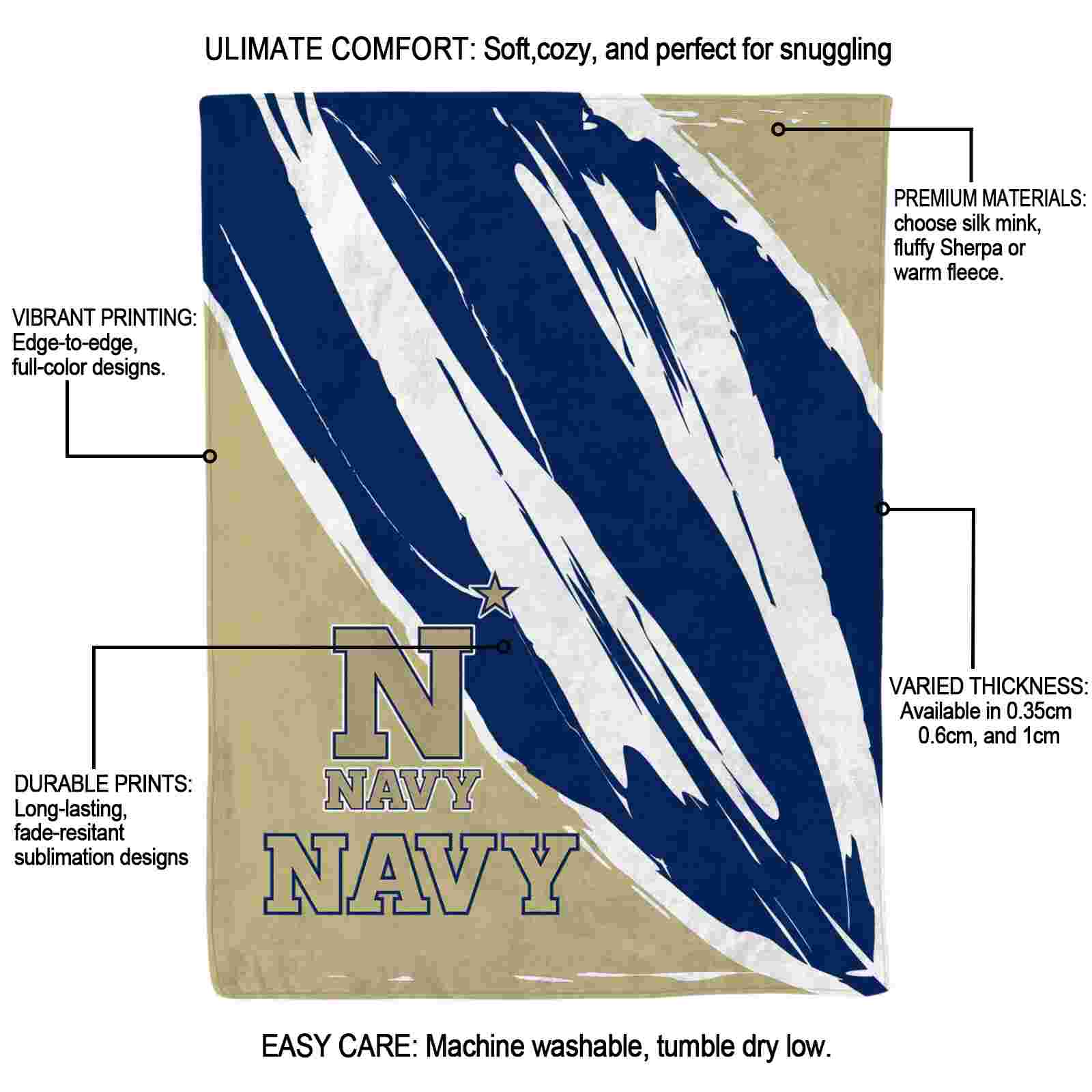 Without a doubt, the Navy Midshipmen Brushstrokes Blue White Blanket from Navy Midshipmen Blankets collection is offering true fans a chance to showcase passion in a cool way. Personalize it with your favorite team's logo or a meaningful name to make it uniquely yours. Isn't that great? The full-color print ensures vibrant, edge-to-edge designs, bringing your sports enthusiasm to life!