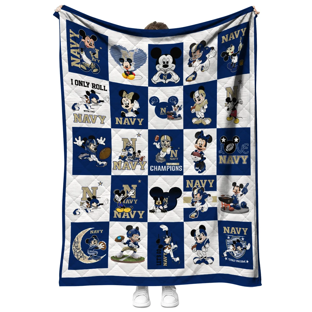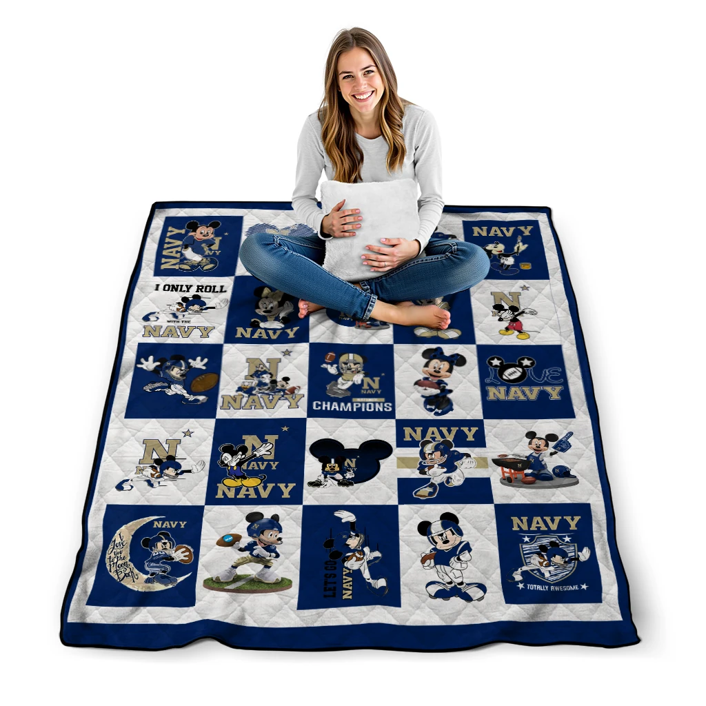 The Navy Midshipmen Mickey Mouse Motif Blue White Quilt Blanket is more than a blanket—it’s everyday comfort, thoughtfully made. Crafted from premium quilting fabric with a soft microfiber touch, it offers a smooth hand-feel and lasting coziness. Layered quilting with a cotton-filled core provides adaptable warmth across seasons while maintaining a clean, tailored look on your bed or sofa.