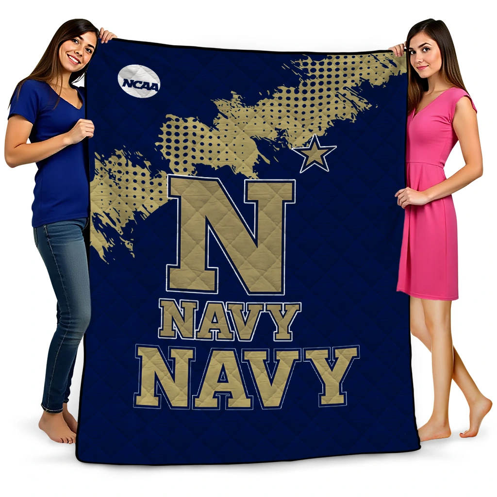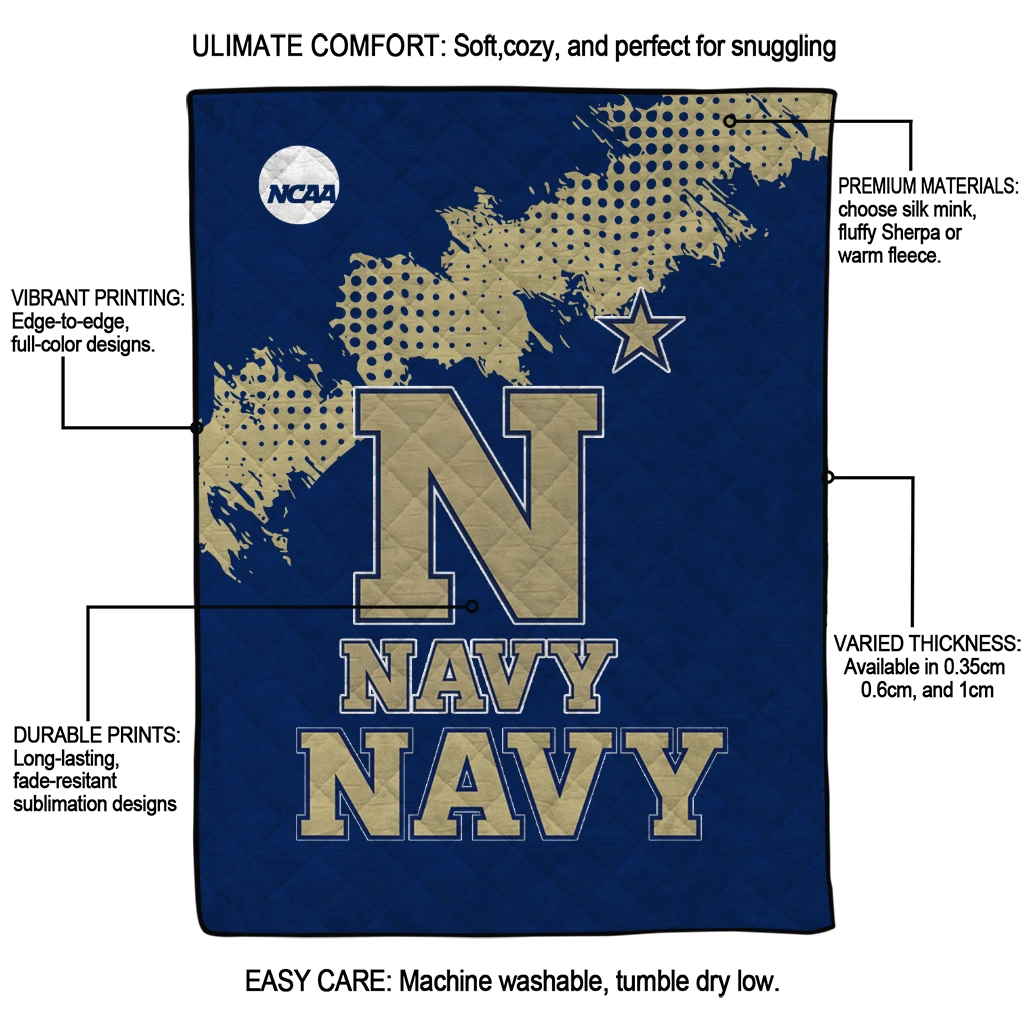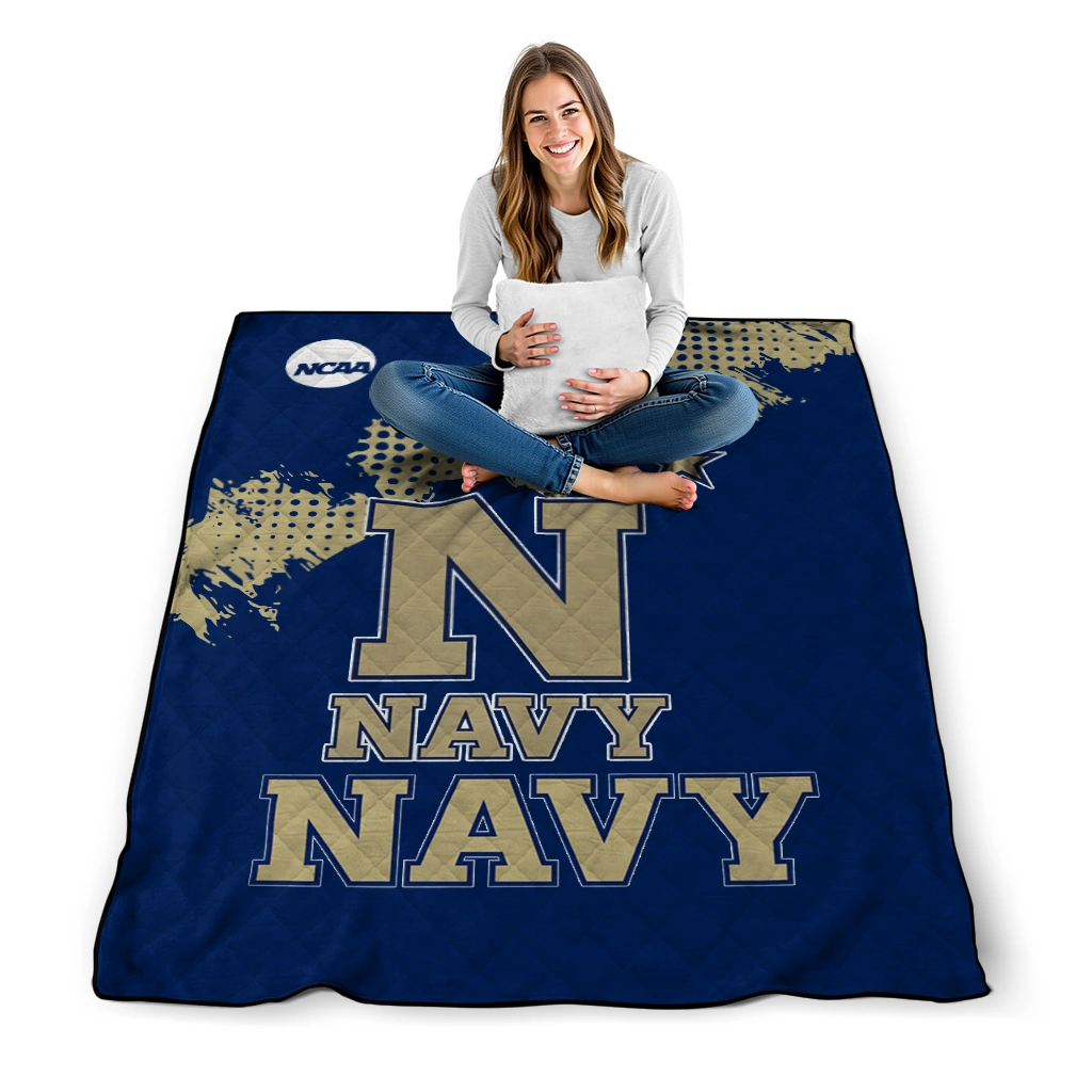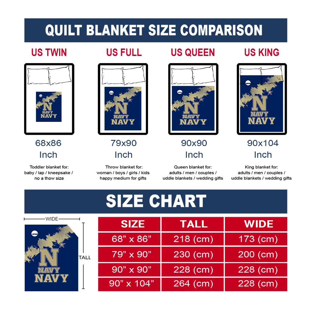 Wrap yourself in warmth and pride with the Navy Midshipmen Paint Trail Blue Quilt Blanket from the Navy Midshipmen Blankets collection at Yes That Blanket. Made from 100% premium quilting-weight polyester blended with a touch of microfiber, this quilt offers a smooth, soft finish you’ll love. Choose between two quilting styles—Stipple or Diagonal—and enjoy the comfort of a cotton-filled layer inside that adds extra coziness for every season. The border is available in classic black or white, giving your design a clean, timeless edge.