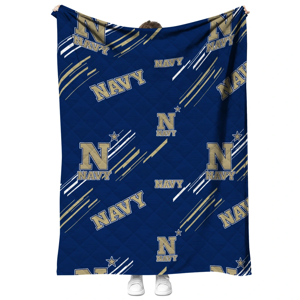 Navy Midshipmen Sketch Lines Blue Quilt Blanket