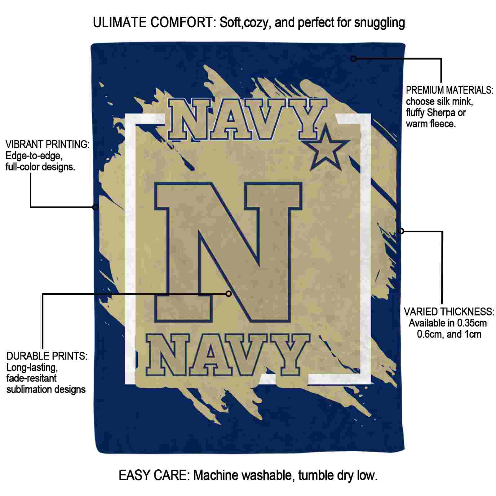 Without a doubt, the Navy Midshipmen Splatter Effect Blue Blanket from Navy Midshipmen Blankets collection is offering true fans a chance to showcase passion in a cool way. Personalize it with your favorite team's logo or a meaningful name to make it uniquely yours. Isn't that great? The full-color print ensures vibrant, edge-to-edge designs, bringing your sports enthusiasm to life!