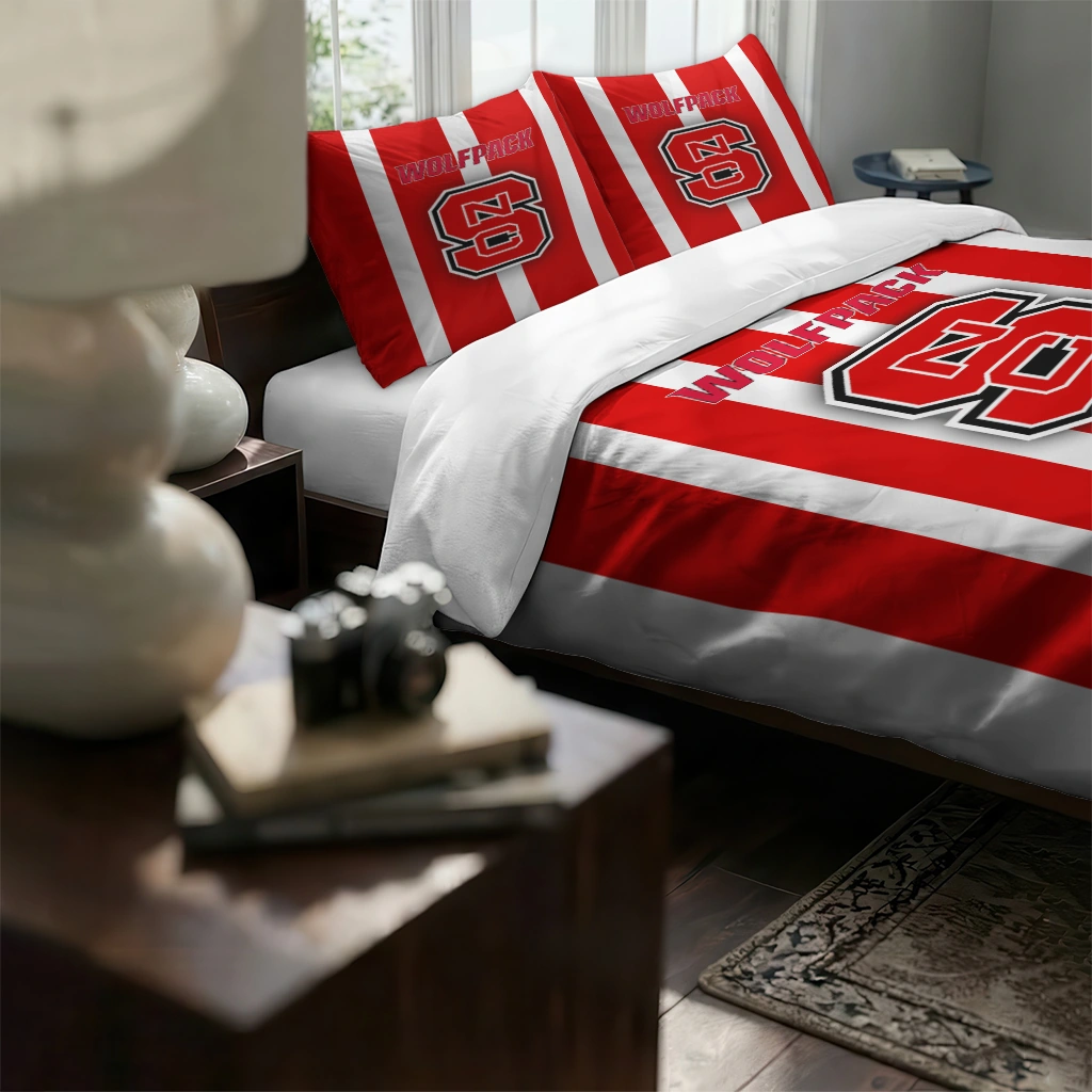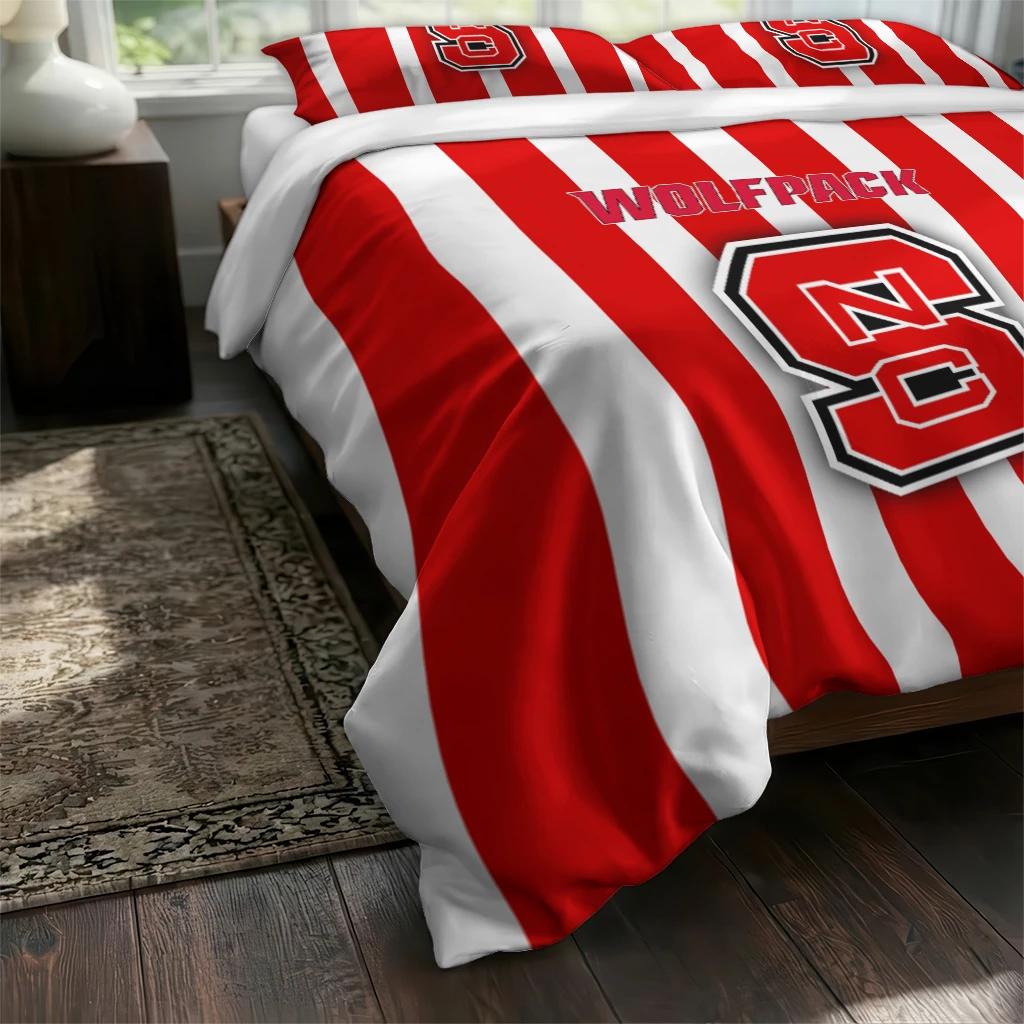 The NC State Wolfpack Bedding Set – Stripe Style Red White makes your room feel complete, warm, and overflowing with team pride. Designed for true fans, this bedding set from the NC State Wolfpack Bedding Sets collection at Yes That Blanket turns your sanctuary into a cozy retreat where sport style meets ultimate relaxation. Experience the perfect blend of comfort and passion every night with a finish so soft, you’ll never want to leave.