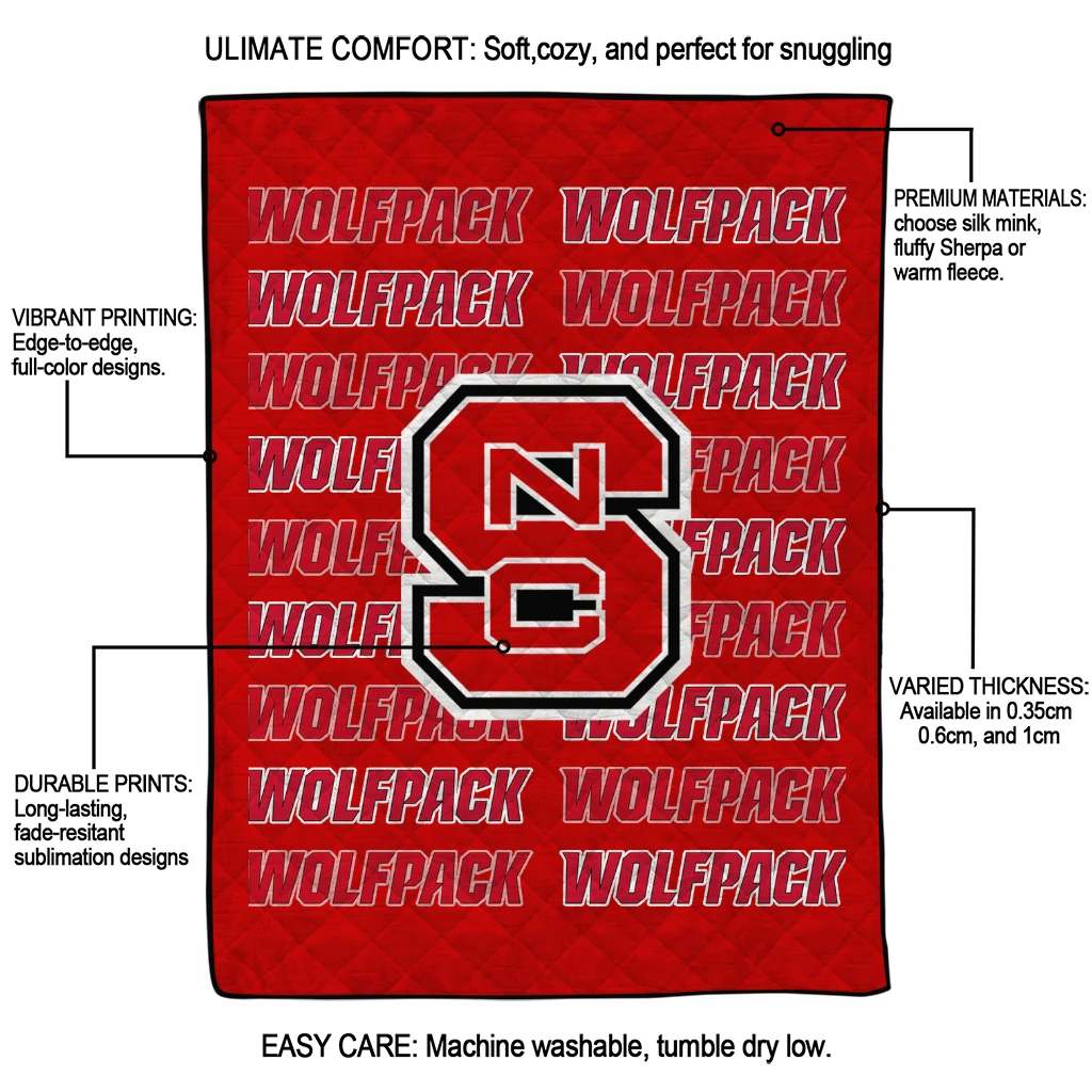 Wrap yourself in warmth and pride with the NC State Wolfpack Bold Red Quilt Blanket from the NC State Wolfpack Blankets collection at Yes That Blanket. Made from 100% premium quilting-weight polyester blended with a touch of microfiber, this quilt offers a smooth, soft finish you’ll love. Choose between two quilting styles—Stipple or Diagonal—and enjoy the comfort of a cotton-filled layer inside that adds extra coziness for every season. The border is available in classic black or white, giving your design a clean, timeless edge.