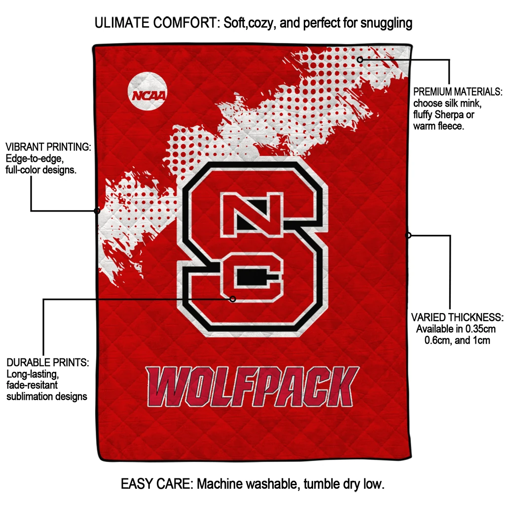 Wrap yourself in warmth and pride with the NC State Wolfpack Paint Trail Red Quilt Blanket from the NC State Wolfpack Blankets collection at Yes That Blanket. Made from 100% premium quilting-weight polyester blended with a touch of microfiber, this quilt offers a smooth, soft finish you’ll love. Choose between two quilting styles—Stipple or Diagonal—and enjoy the comfort of a cotton-filled layer inside that adds extra coziness for every season. The border is available in classic black or white, giving your design a clean, timeless edge.