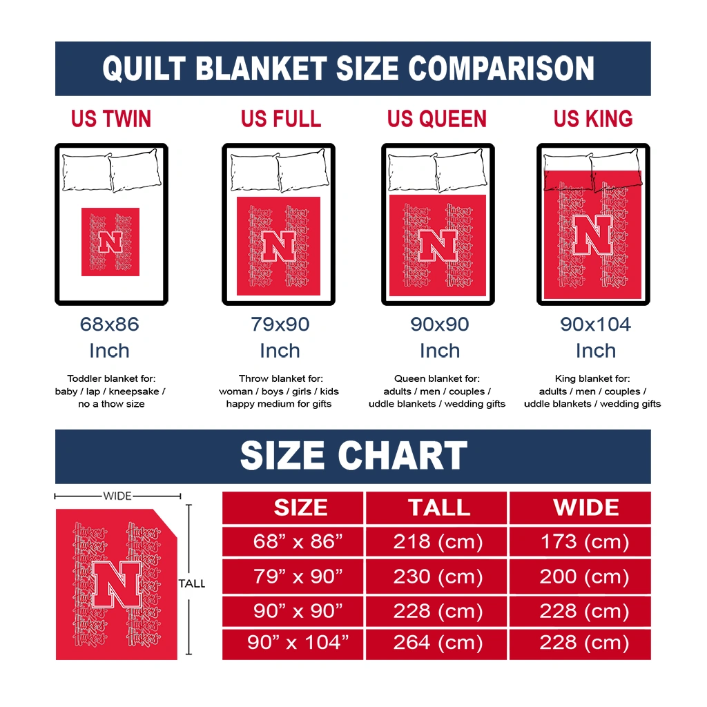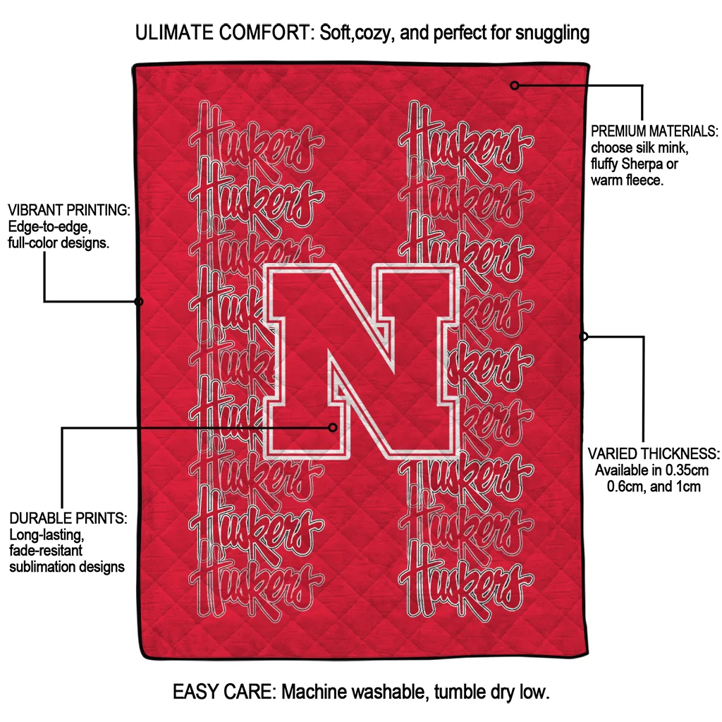 Wrap yourself in warmth and pride with the Nebraska Cornhuskers Bold Red Quilt Blanket from the Nebraska Cornhuskers Blankets collection at Yes That Blanket. Made from 100% premium quilting-weight polyester blended with a touch of microfiber, this quilt offers a smooth, soft finish you’ll love. Choose between two quilting styles—Stipple or Diagonal—and enjoy the comfort of a cotton-filled layer inside that adds extra coziness for every season. The border is available in classic black or white, giving your design a clean, timeless edge.