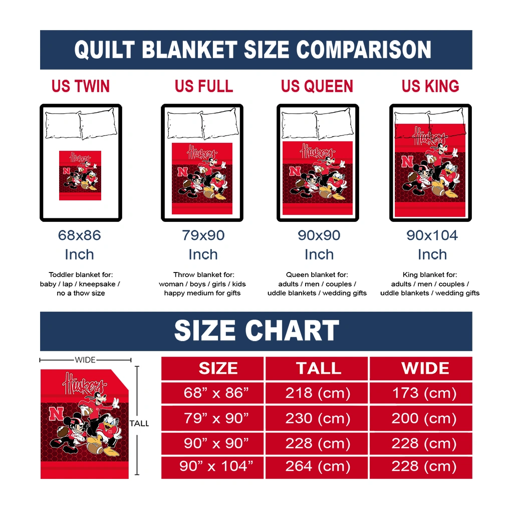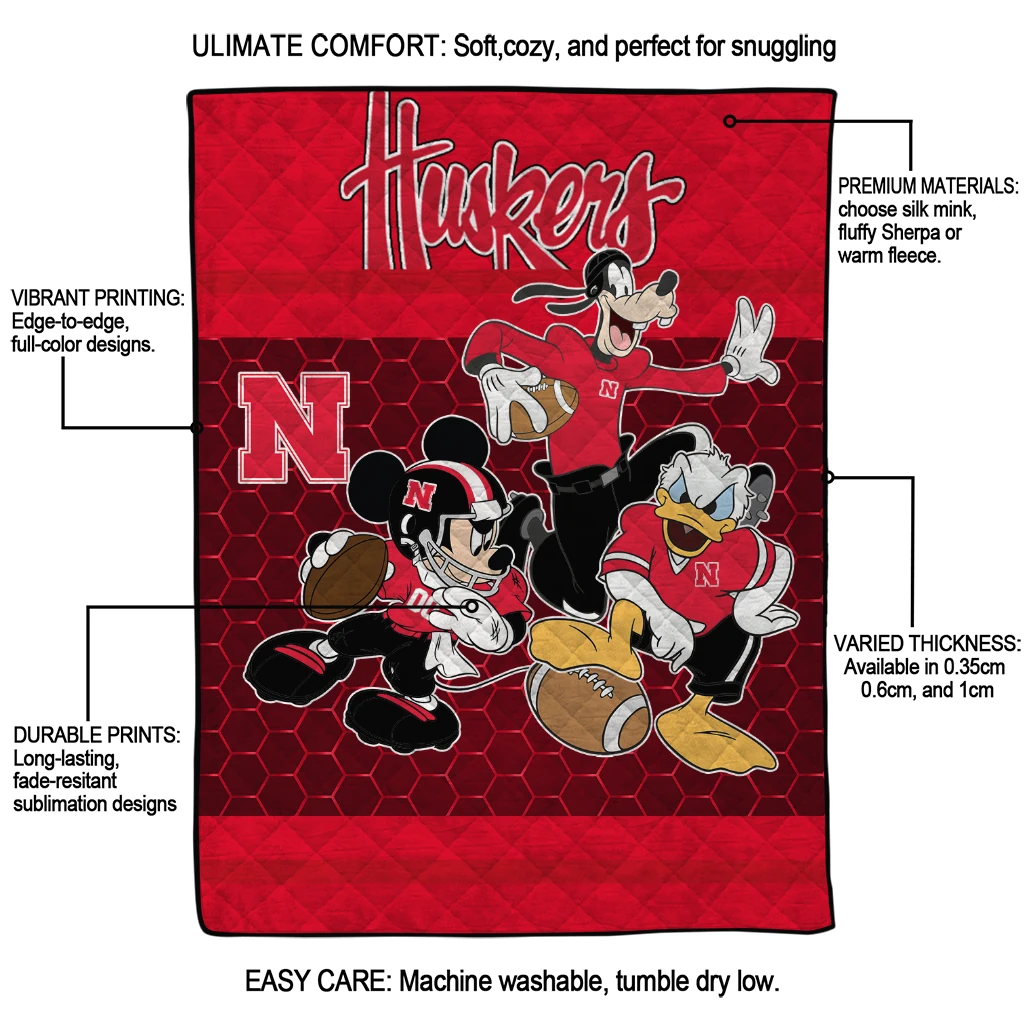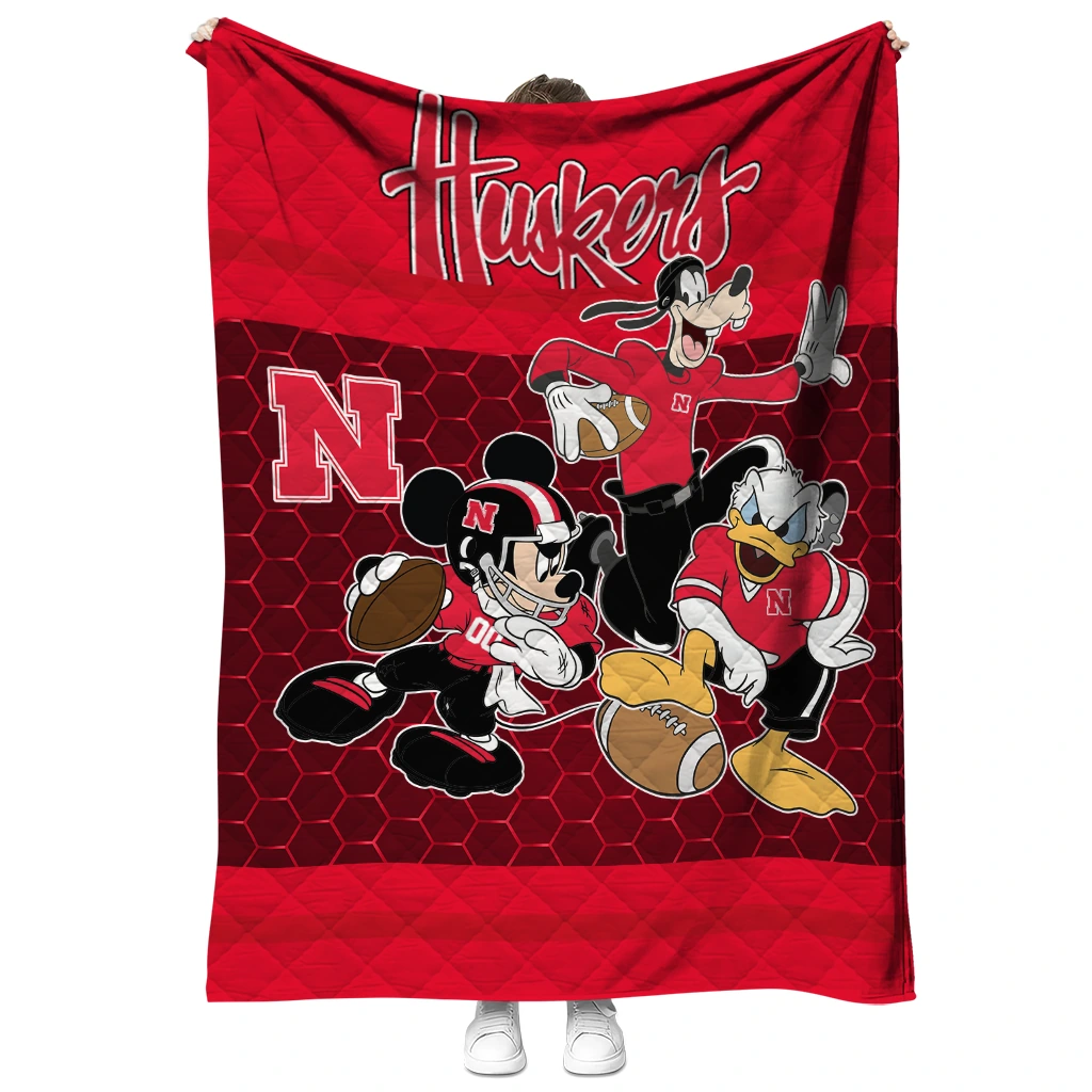 Wrap yourself in warmth and pride with the Nebraska Cornhuskers Disney Football Red Quilt Blanket from the Nebraska Cornhuskers Blankets collection at Yes That Blanket. Made from 100% premium quilting-weight polyester blended with a touch of microfiber, this quilt offers a smooth, soft finish you’ll love. Choose between two quilting styles—Stipple or Diagonal—and enjoy the comfort of a cotton-filled layer inside that adds extra coziness for every season. The border is available in classic black or white, giving your design a clean, timeless edge.
