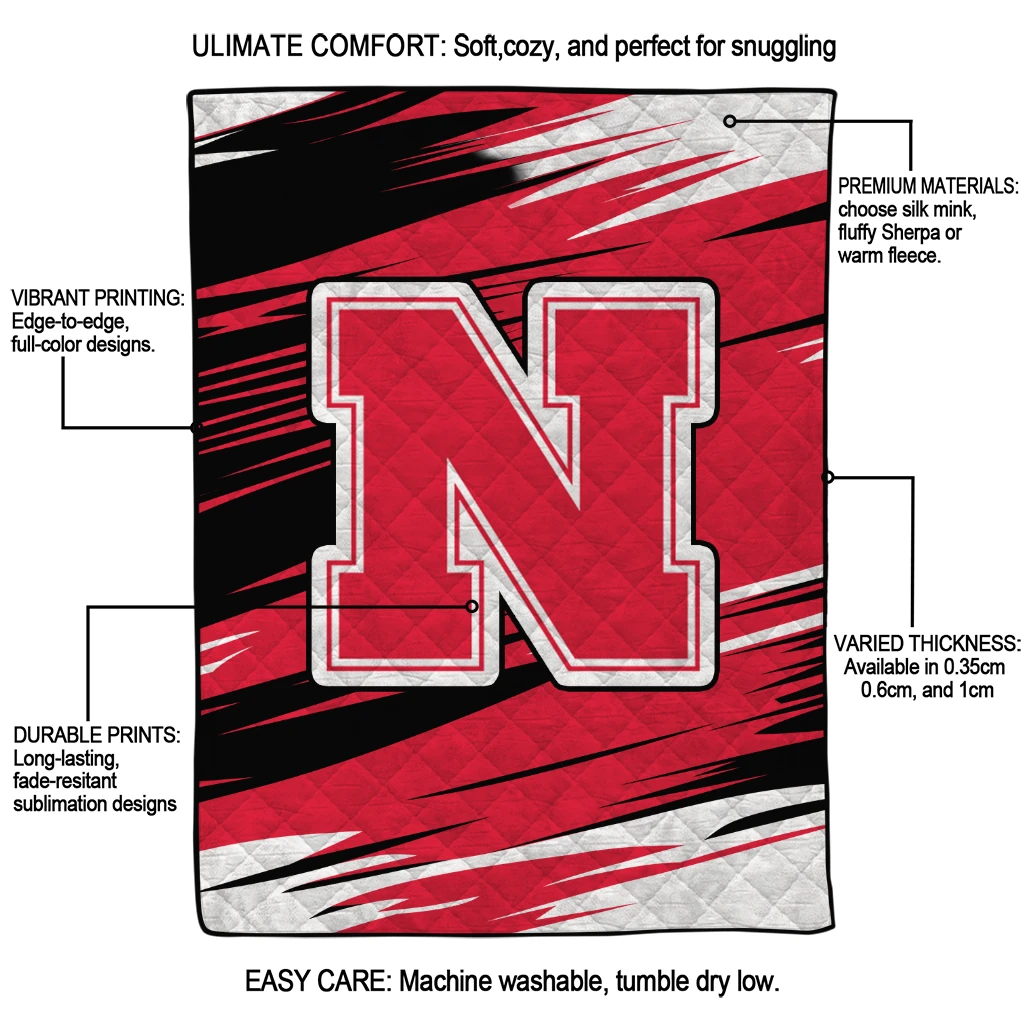 Wrap yourself in warmth and pride with the Nebraska Cornhuskers Wild Lines Red White Quilt Blanket from the Nebraska Cornhuskers Blankets collection at Yes That Blanket. Made from 100% premium quilting-weight polyester blended with a touch of microfiber, this quilt offers a smooth, soft finish you’ll love. Choose between two quilting styles—Stipple or Diagonal—and enjoy the comfort of a cotton-filled layer inside that adds extra coziness for every season. The border is available in classic black or white, giving your design a clean, timeless edge.