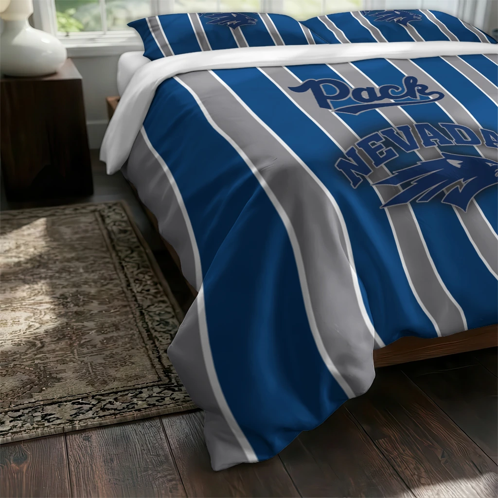 The Nevada Wolf Pack Bedding Set – Stripe Style Blue Gray makes your room feel complete, warm, and overflowing with team pride. Designed for true fans, this bedding set from the Nevada Wolf Pack Bedding Sets collection at Yes That Blanket turns your sanctuary into a cozy retreat where sport style meets ultimate relaxation. Experience the perfect blend of comfort and passion every night with a finish so soft, you’ll never want to leave.