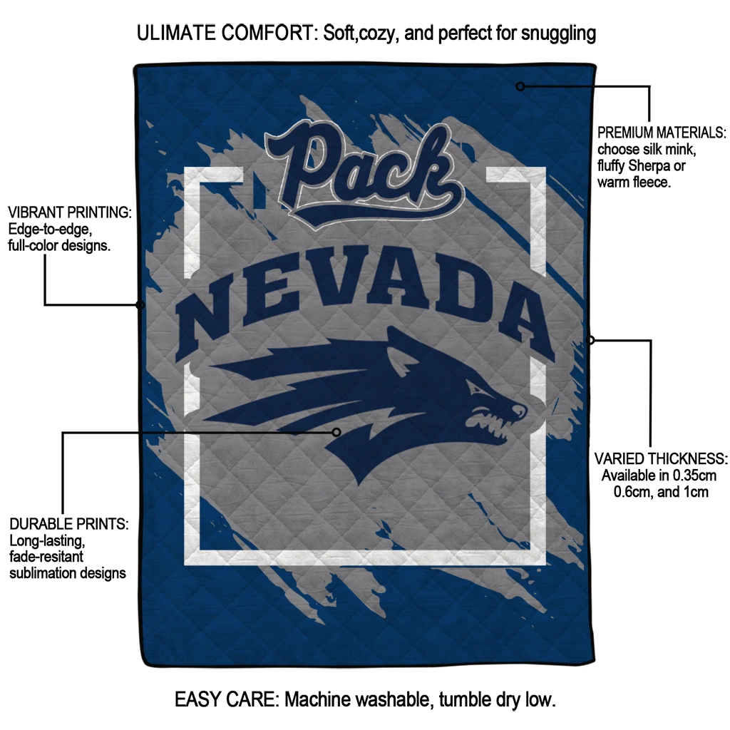 The Nevada Wolf Pack Block Border Blue Quilt Blanket is more than a blanket—it’s everyday comfort, thoughtfully made. Crafted from premium quilting fabric with a soft microfiber touch, it offers a smooth hand-feel and lasting coziness. Layered quilting with a cotton-filled core provides adaptable warmth across seasons while maintaining a clean, tailored look on your bed or sofa.
