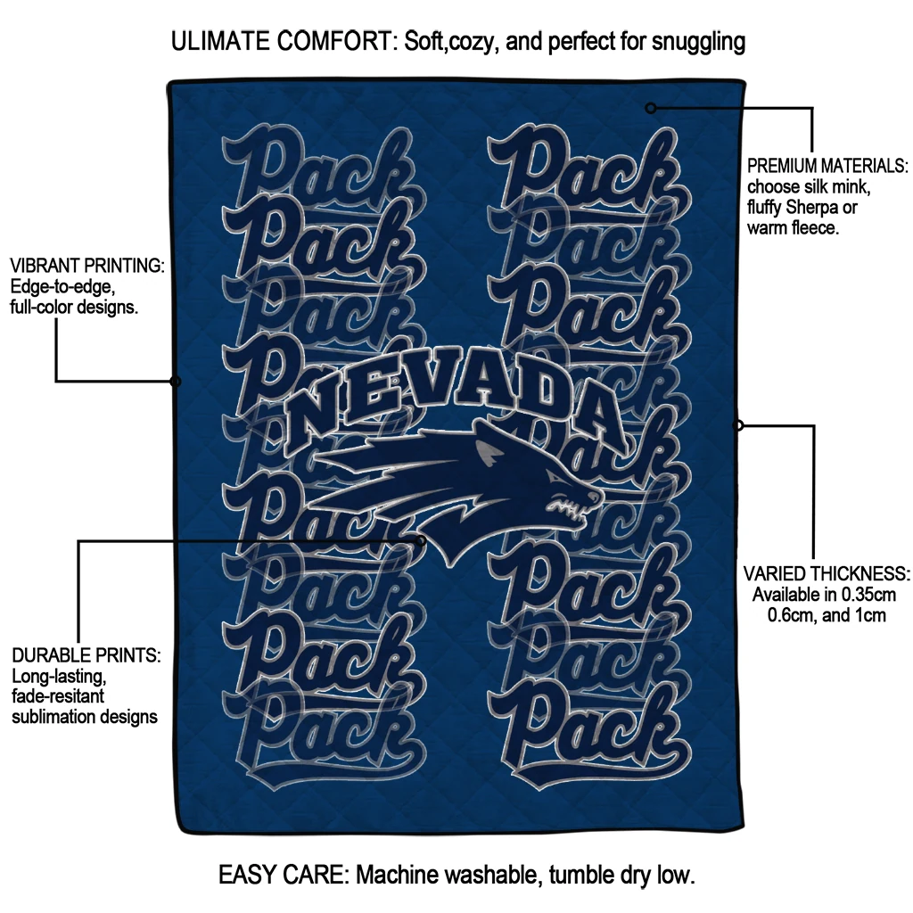 The Nevada Wolf Pack Bold Red Blue Quilt Blanket is more than a blanket—it’s everyday comfort, thoughtfully made. Crafted from premium quilting fabric with a soft microfiber touch, it offers a smooth hand-feel and lasting coziness. Layered quilting with a cotton-filled core provides adaptable warmth across seasons while maintaining a clean, tailored look on your bed or sofa.