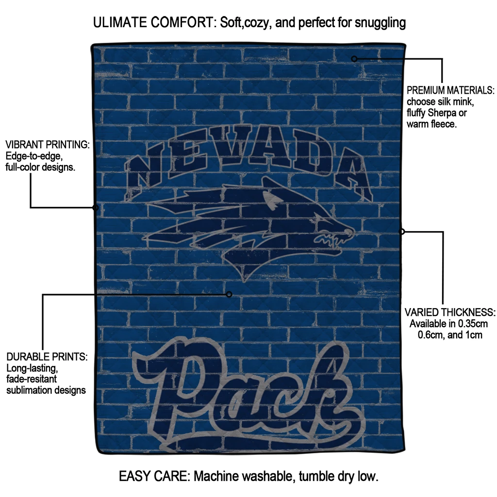 Wrap yourself in warmth and pride with the Nevada Wolf Pack Brick Grid Blue Quilt Blanket from the Nevada Wolf Pack Blankets collection at Yes That Blanket. Made from 100% premium quilting-weight polyester blended with a touch of microfiber, this quilt offers a smooth, soft finish you’ll love. Choose between two quilting styles—Stipple or Diagonal—and enjoy the comfort of a cotton-filled layer inside that adds extra coziness for every season. The border is available in classic black or white, giving your design a clean, timeless edge.