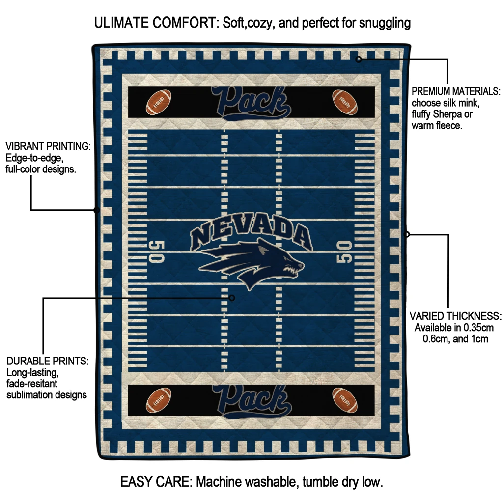 Wrap yourself in warmth and pride with the Nevada Wolf Pack Mickey Player Blue Quilt Blanket from the Nevada Wolf Pack Blankets collection at Yes That Blanket. Made from 100% premium quilting-weight polyester blended with a touch of microfiber, this quilt offers a smooth, soft finish you’ll love. Choose between two quilting styles—Stipple or Diagonal—and enjoy the comfort of a cotton-filled layer inside that adds extra coziness for every season. The border is available in classic black or white, giving your design a clean, timeless edge.