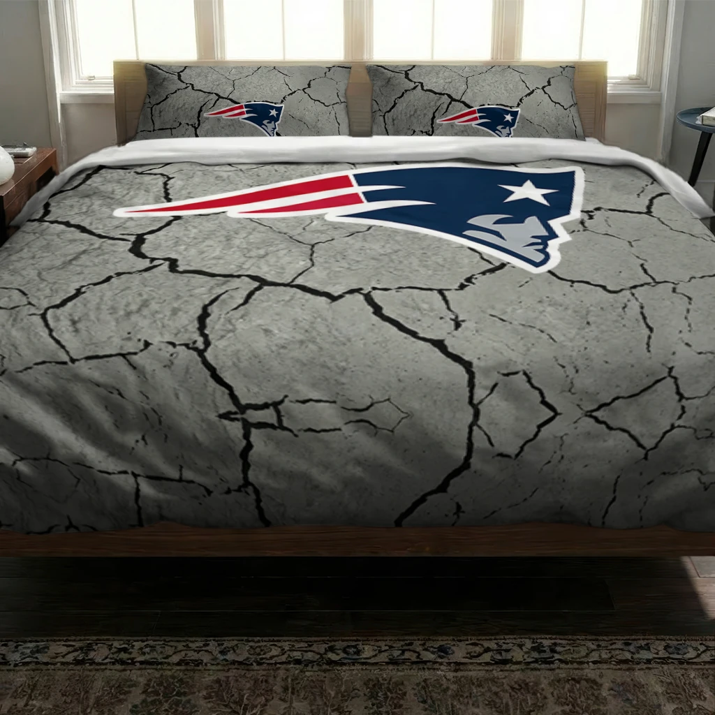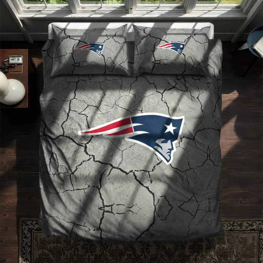 New England Patriots Bedding Set – Cracked Texture Gray Blue