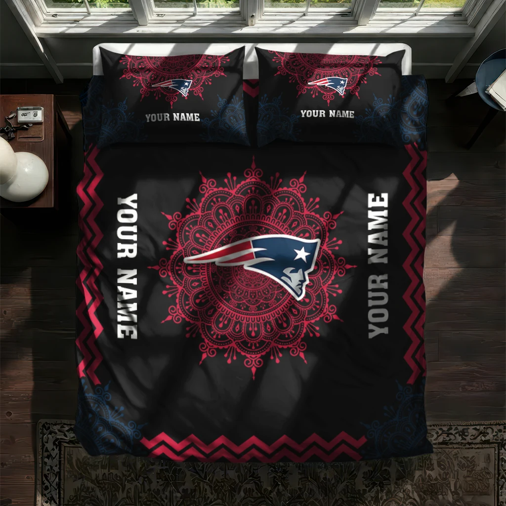 New England Patriots Bedding Set – Personalized Mandala Lacework Black Red
