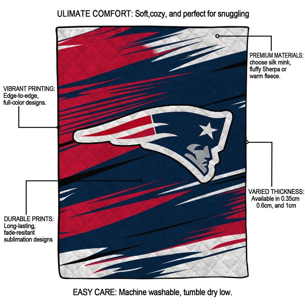 The New England Patriots Wild Lines Blue White Quilt Blanket is more than a blanket—it’s everyday comfort, thoughtfully made. Crafted from premium quilting fabric with a soft microfiber touch, it offers a smooth hand-feel and lasting coziness. Layered quilting with a cotton-filled core provides adaptable warmth across seasons while maintaining a clean, tailored look on your bed or sofa.