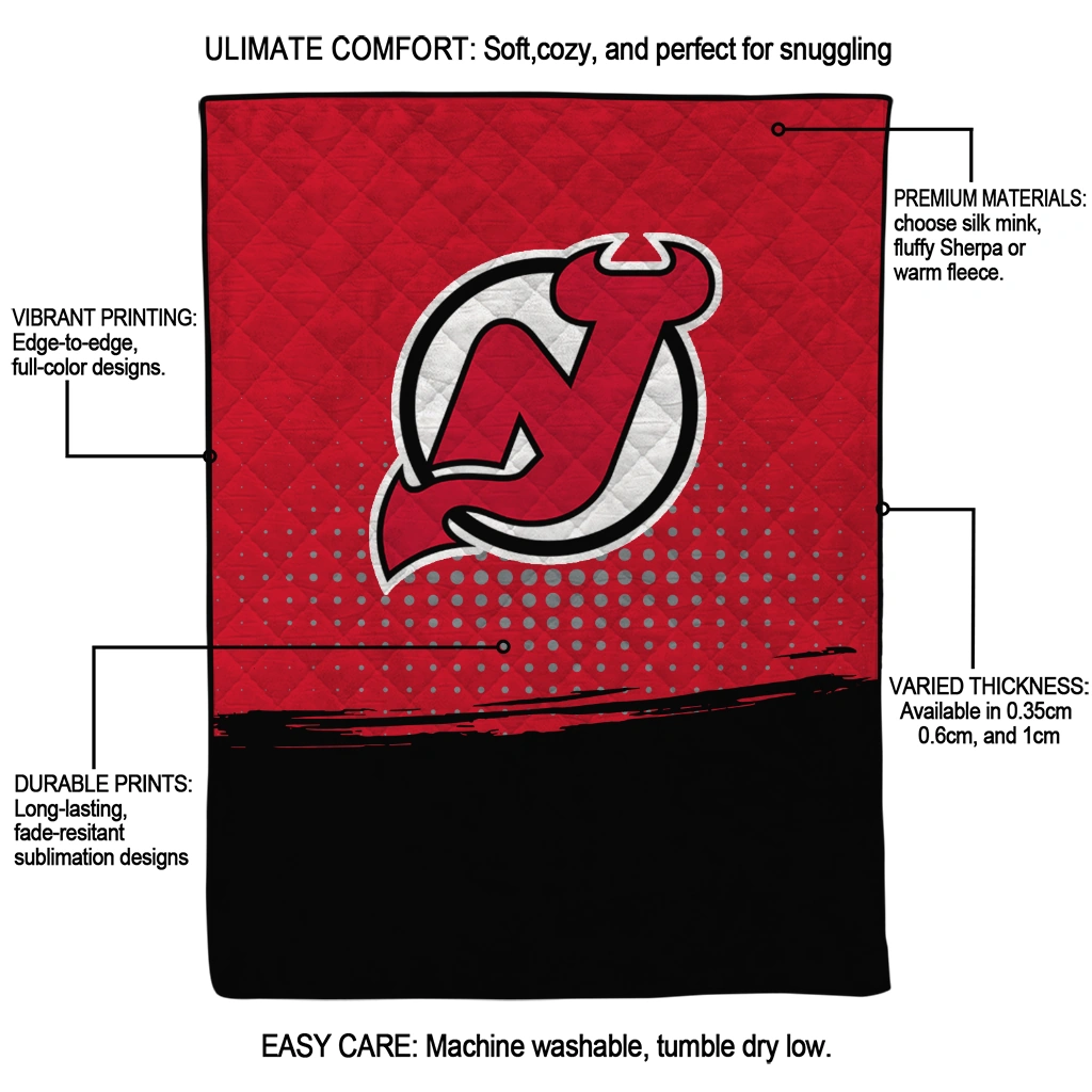The New Jersey Devils Dot Illusion Red Quilt Blanket is more than a blanket—it’s everyday comfort, thoughtfully made. Crafted from premium quilting fabric with a soft microfiber touch, it offers a smooth hand-feel and lasting coziness. Layered quilting with a cotton-filled core provides adaptable warmth across seasons while maintaining a clean, tailored look on your bed or sofa.