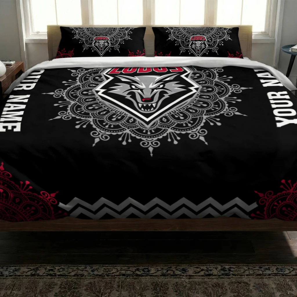New Mexico Lobos Bedding Set – Customized Mandala Lacework Black Red