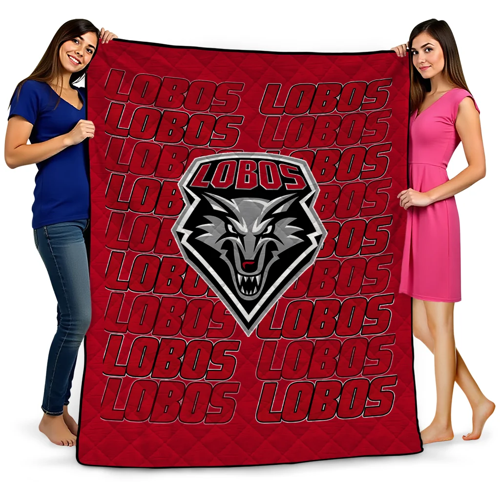 Wrap yourself in warmth and pride with the New Mexico Lobos Bold Red Quilt Blanket from the New Mexico Lobos Blankets collection at Yes That Blanket. Made from 100% premium quilting-weight polyester blended with a touch of microfiber, this quilt offers a smooth, soft finish you’ll love. Choose between two quilting styles—Stipple or Diagonal—and enjoy the comfort of a cotton-filled layer inside that adds extra coziness for every season. The border is available in classic black or white, giving your design a clean, timeless edge.