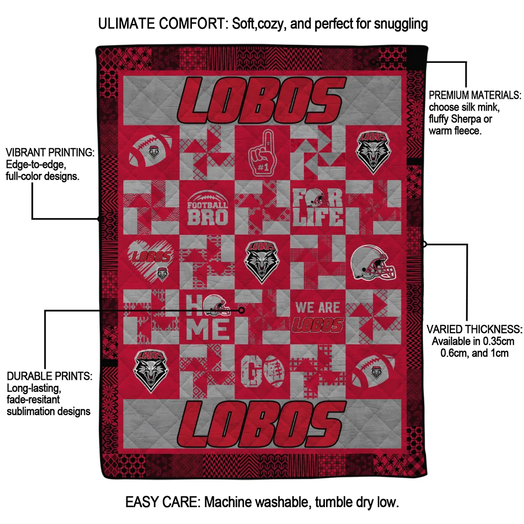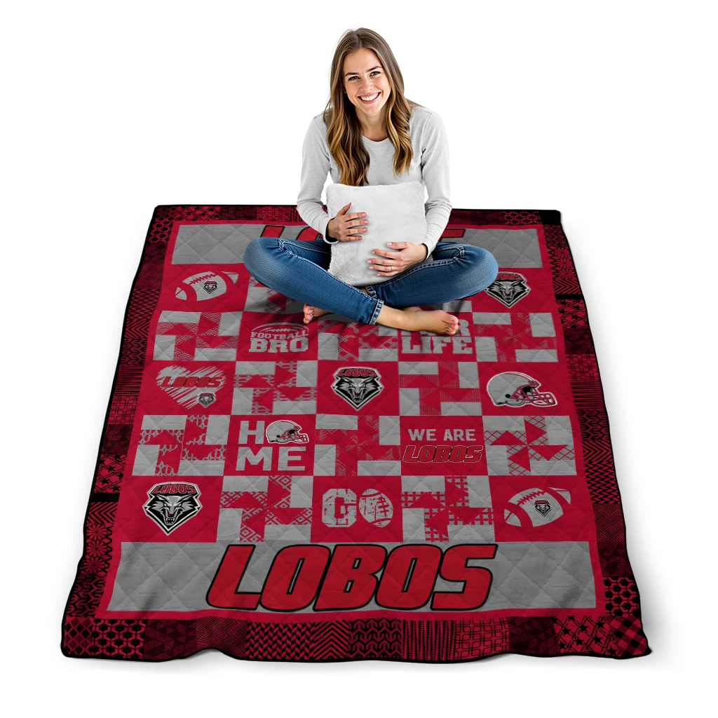 New Mexico Lobos Helmet Heart Red Quilt Blanket