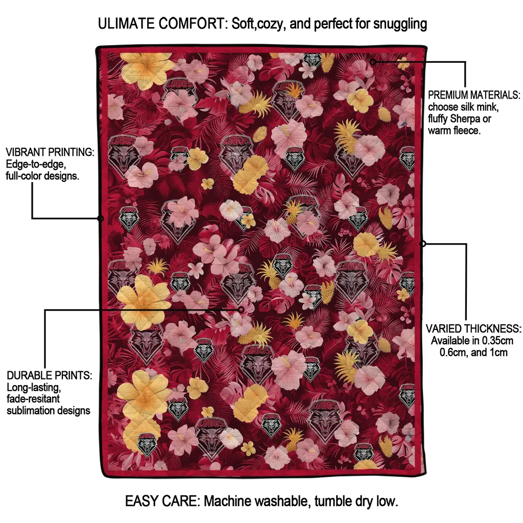 Wrap yourself in warmth and pride with the New Mexico Lobos Hibiscus Foliage Red Quilt Blanket from the New Mexico Lobos Blankets collection at Yes That Blanket. Made from 100% premium quilting-weight polyester blended with a touch of microfiber, this quilt offers a smooth, soft finish you’ll love. Choose between two quilting styles—Stipple or Diagonal—and enjoy the comfort of a cotton-filled layer inside that adds extra coziness for every season. The border is available in classic black or white, giving your design a clean, timeless edge.