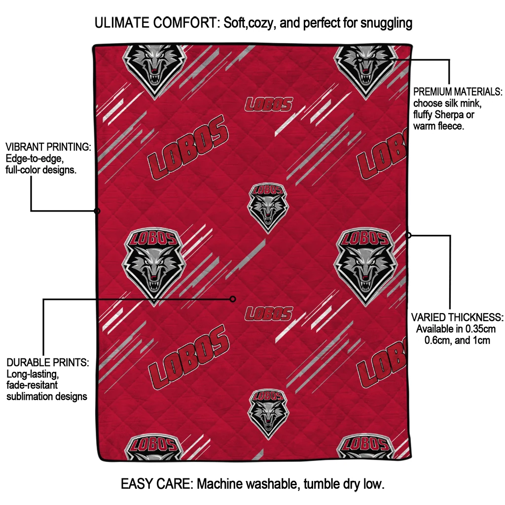 New Mexico Lobos Sketch Lines Red Quilt Blanket