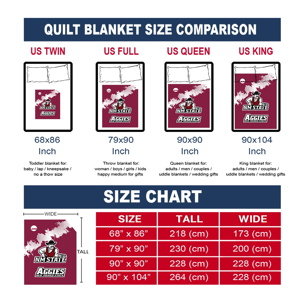 Wrap yourself in warmth and pride with the New Mexico State Aggies Paint Trail Crimson Quilt Blanket from the New Mexico State Aggies Blankets collection at Yes That Blanket. Made from 100% premium quilting-weight polyester blended with a touch of microfiber, this quilt offers a smooth, soft finish you’ll love. Choose between two quilting styles—Stipple or Diagonal—and enjoy the comfort of a cotton-filled layer inside that adds extra coziness for every season. The border is available in classic black or white, giving your design a clean, timeless edge.