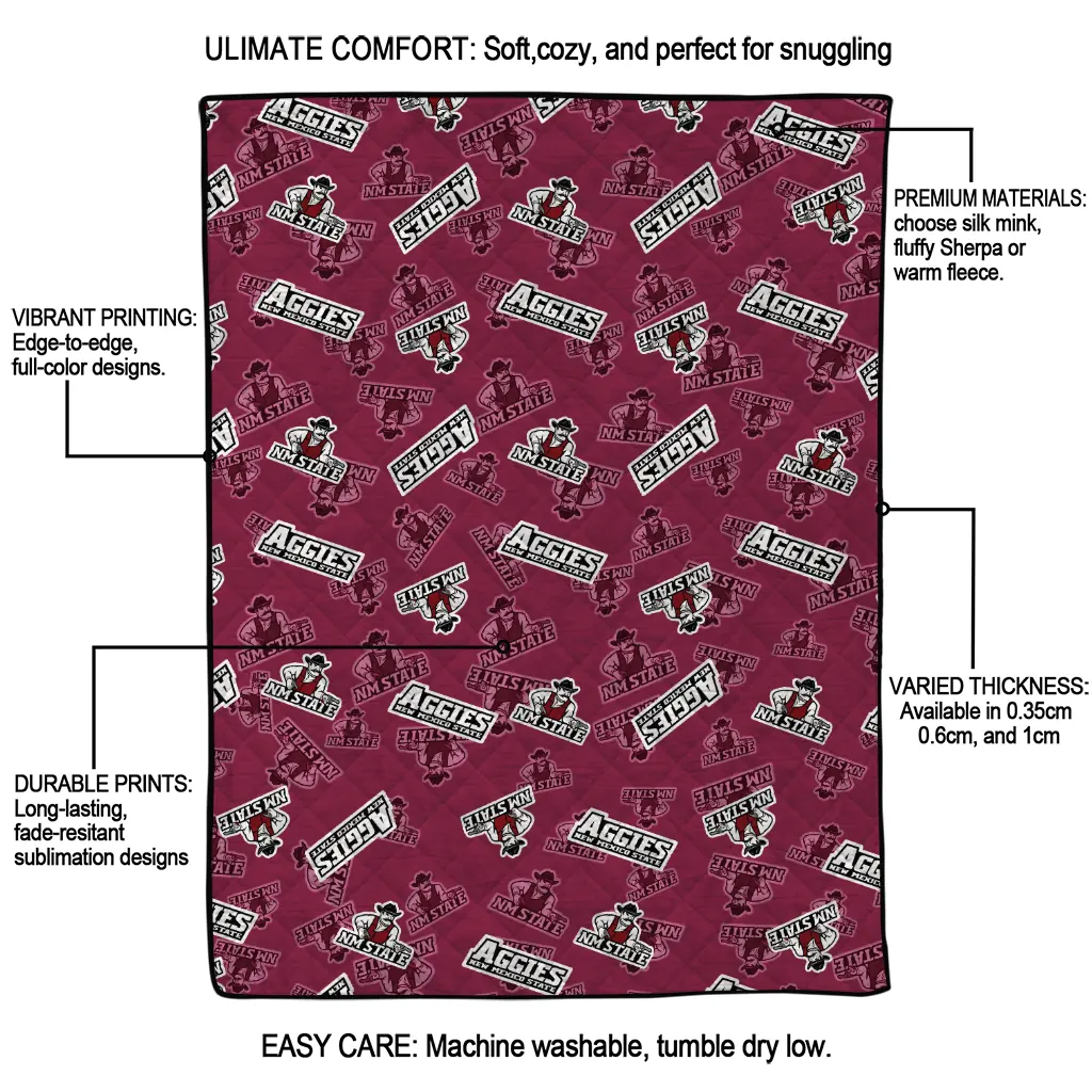 Wrap yourself in warmth and pride with the New Mexico State Aggies Solid Classic Crimson Quilt Blanket from the New Mexico State Aggies Blankets collection at Yes That Blanket. Made from 100% premium quilting-weight polyester blended with a touch of microfiber, this quilt offers a smooth, soft finish you’ll love. Choose between two quilting styles—Stipple or Diagonal—and enjoy the comfort of a cotton-filled layer inside that adds extra coziness for every season. The border is available in classic black or white, giving your design a clean, timeless edge.