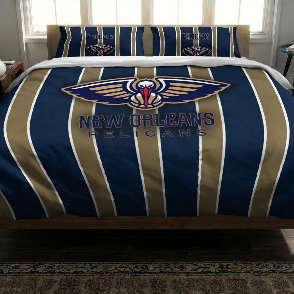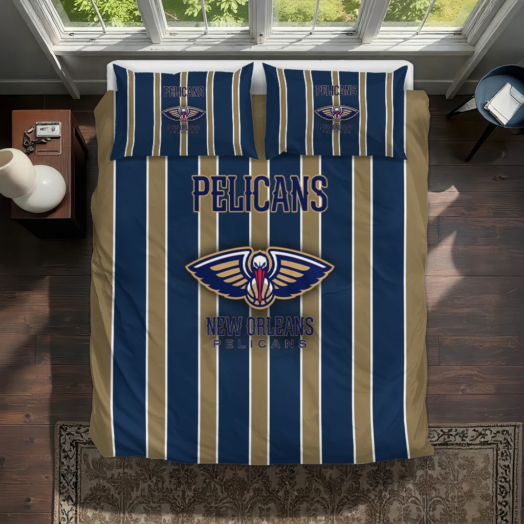 New Orleans Pelicans Bedding Set – Stripe Style Blue Beige