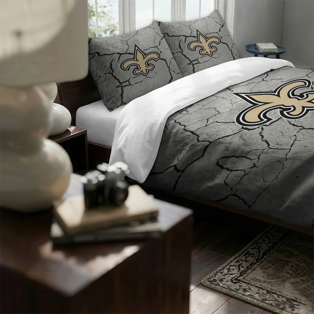 The New Orleans Saints Bedding Set – Cracked Texture Gray Beige makes your room feel complete, warm, and overflowing with team pride. Designed for true fans, this bedding set from the New Orleans Saints Bedding Sets collection at Yes That Blanket turns your sanctuary into a cozy retreat where sport style meets ultimate relaxation. Experience the perfect blend of comfort and passion every night with a finish so soft, you’ll never want to leave.