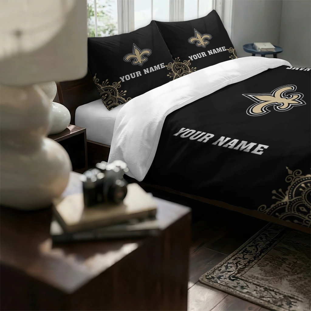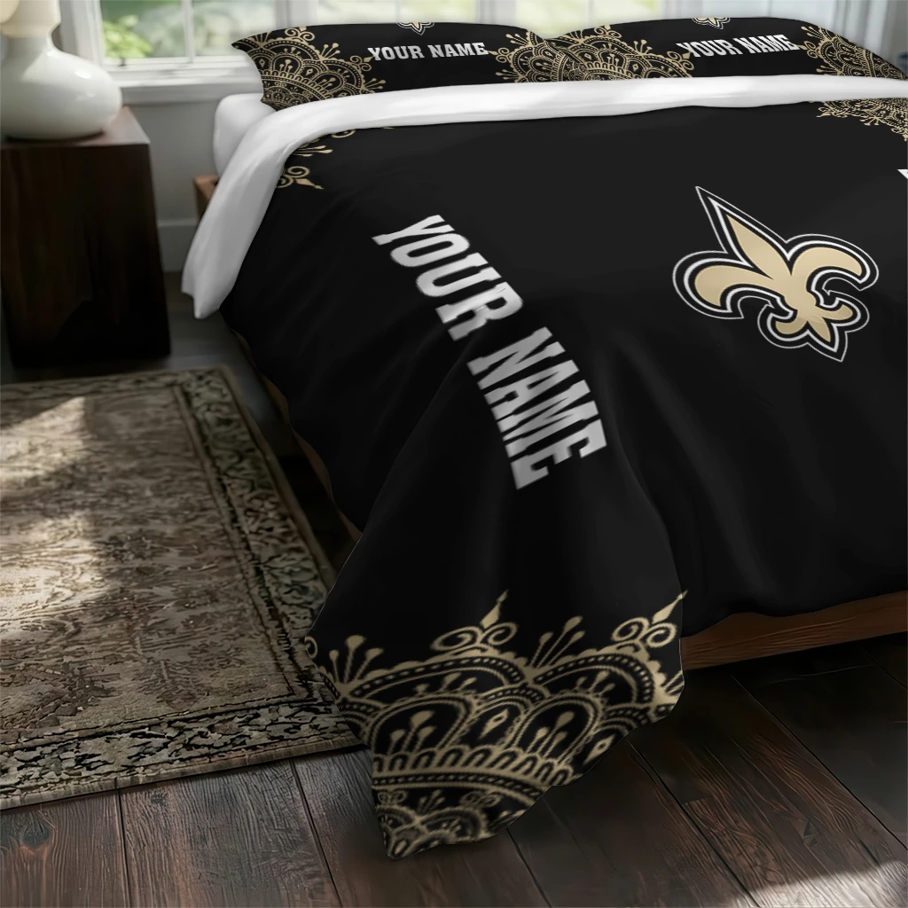 The New Orleans Saints Bedding Set – Custom Mandala Lacework Black Beige makes your room feel complete, warm, and overflowing with team pride. Designed for true fans, this bedding set from the New Orleans Saints Bedding Sets collection at Yes That Blanket turns your sanctuary into a cozy retreat where sport style meets ultimate relaxation. Experience the perfect blend of comfort and passion every night with a finish so soft, you’ll never want to leave.