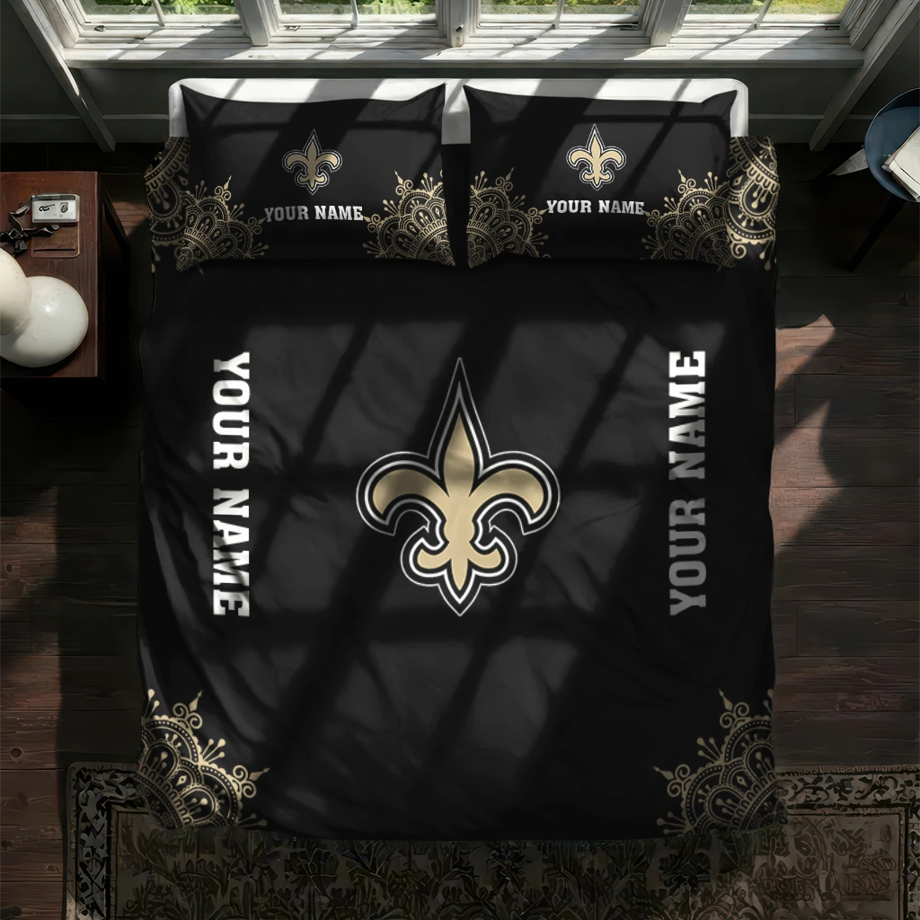 New Orleans Saints Bedding Set – Custom Mandala Lacework Black Beige