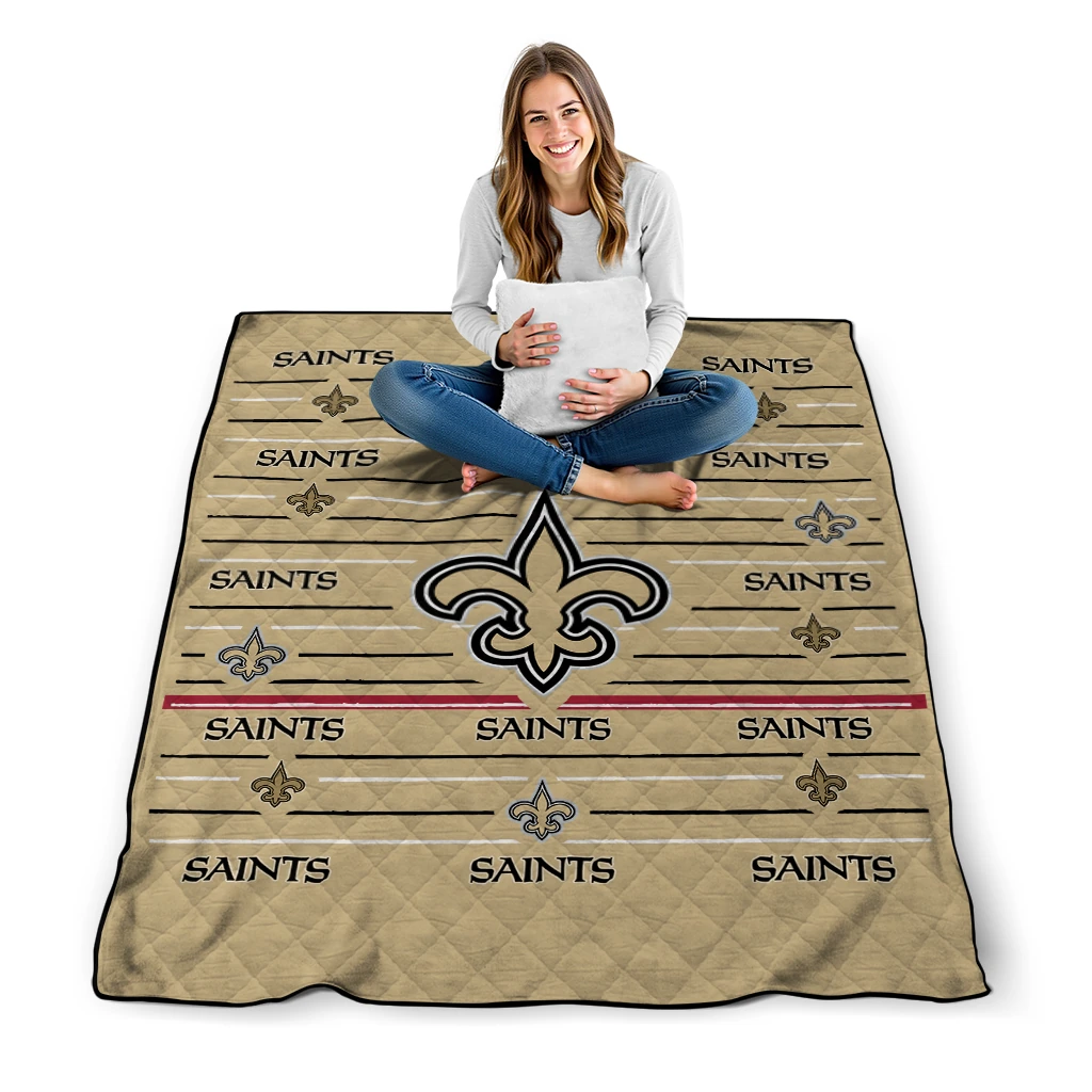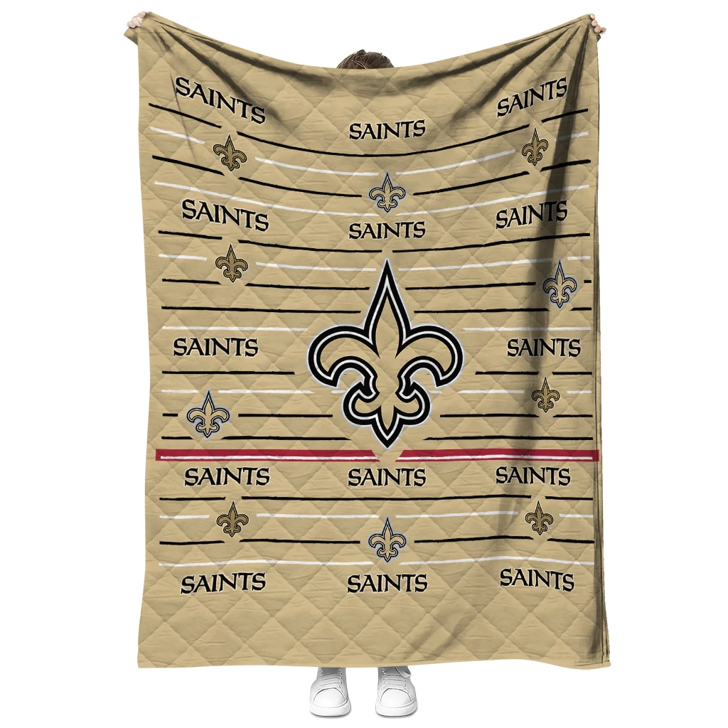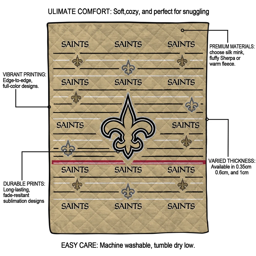 The New Orleans Saints Handdrawn Stripes Gold Quilt Blanket is more than a blanket—it’s everyday comfort, thoughtfully made. Crafted from premium quilting fabric with a soft microfiber touch, it offers a smooth hand-feel and lasting coziness. Layered quilting with a cotton-filled core provides adaptable warmth across seasons while maintaining a clean, tailored look on your bed or sofa.