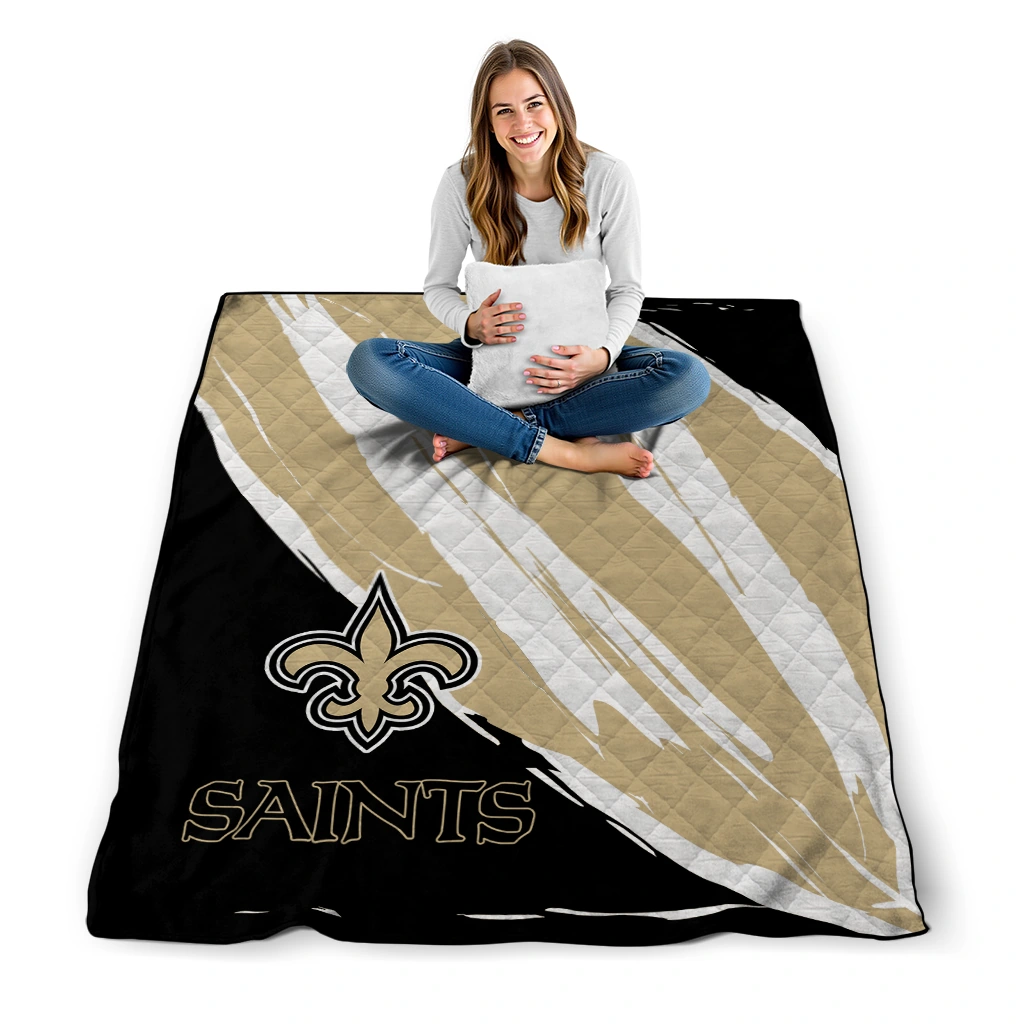 The New Orleans Saints Stroke Art Gold White Quilt Blanket is more than a blanket—it’s everyday comfort, thoughtfully made. Crafted from premium quilting fabric with a soft microfiber touch, it offers a smooth hand-feel and lasting coziness. Layered quilting with a cotton-filled core provides adaptable warmth across seasons while maintaining a clean, tailored look on your bed or sofa.
