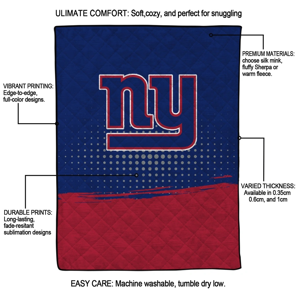 The New York Giants Dot Illusion Blue Quilt Blanket is more than a blanket—it’s everyday comfort, thoughtfully made. Crafted from premium quilting fabric with a soft microfiber touch, it offers a smooth hand-feel and lasting coziness. Layered quilting with a cotton-filled core provides adaptable warmth across seasons while maintaining a clean, tailored look on your bed or sofa.
