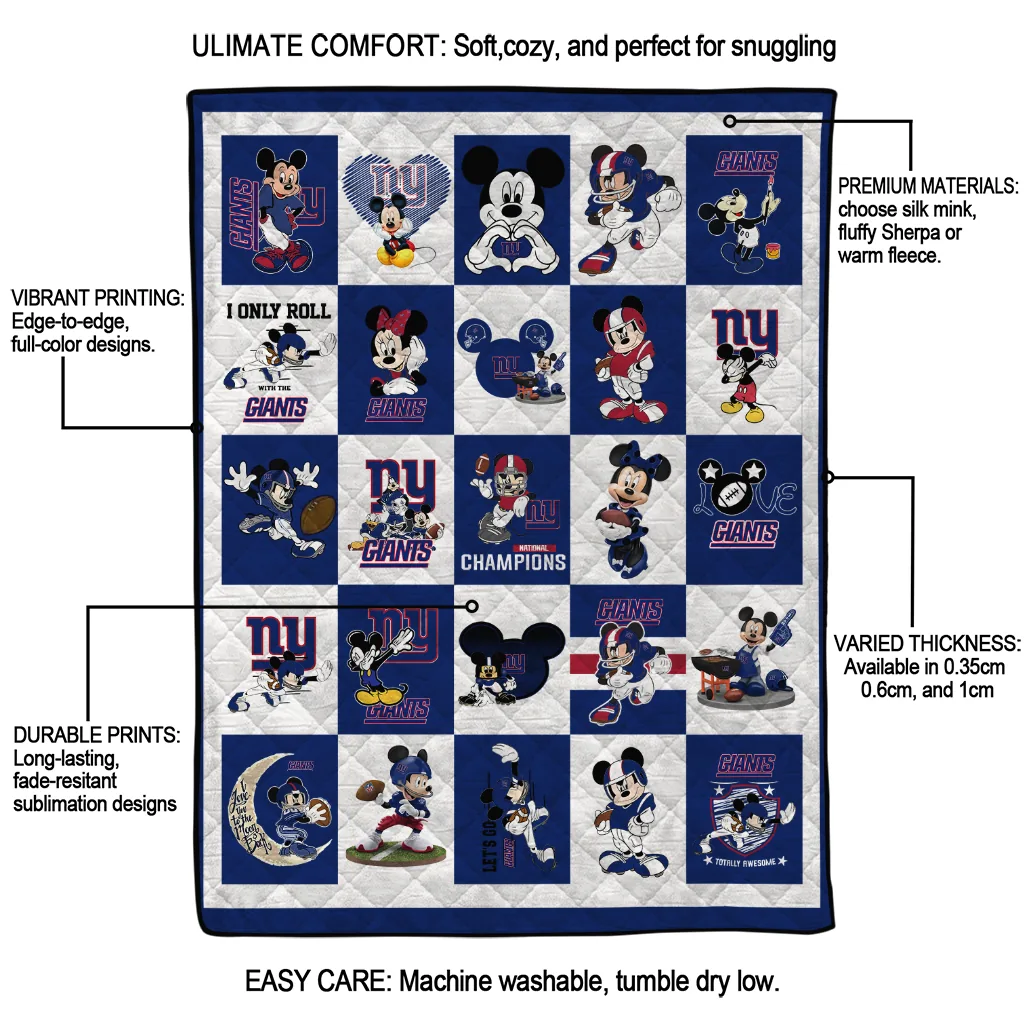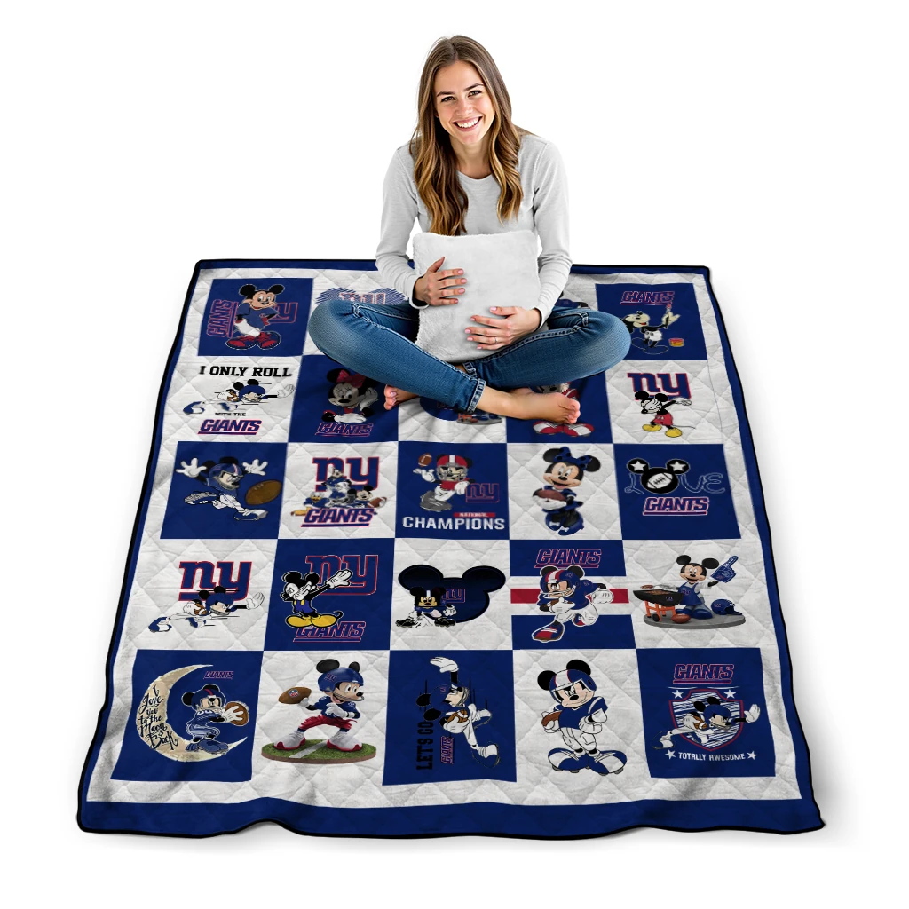The New York Giants Mickey Pattern Blue White Quilt Blanket is more than a blanket—it’s everyday comfort, thoughtfully made. Crafted from premium quilting fabric with a soft microfiber touch, it offers a smooth hand-feel and lasting coziness. Layered quilting with a cotton-filled core provides adaptable warmth across seasons while maintaining a clean, tailored look on your bed or sofa.