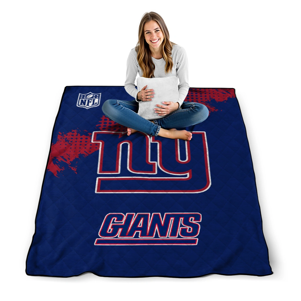 Wrap yourself in warmth and pride with the New York Giants Shield Badge Blue Quilt Blanket from the New York Giants Blankets collection at Yes That Blanket. Made from 100% premium quilting-weight polyester blended with a touch of microfiber, this quilt offers a smooth, soft finish you’ll love. Choose between two quilting styles—Stipple or Diagonal—and enjoy the comfort of a cotton-filled layer inside that adds extra coziness for every season. The border is available in classic black or white, giving your design a clean, timeless edge.