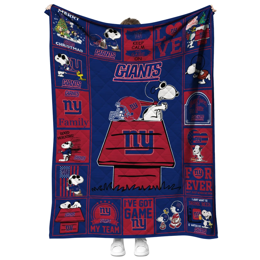 New York Giants Snoopy Love Blue Quilt Blanket
