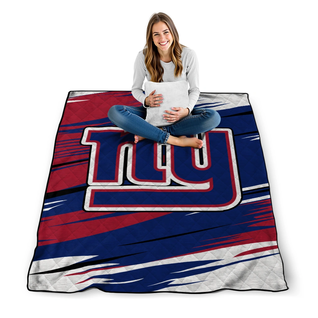 Wrap yourself in warmth and pride with the New York Giants Wild Lines Blue White Quilt Blanket from the New York Giants Blankets collection at Yes That Blanket. Made from 100% premium quilting-weight polyester blended with a touch of microfiber, this quilt offers a smooth, soft finish you’ll love. Choose between two quilting styles—Stipple or Diagonal—and enjoy the comfort of a cotton-filled layer inside that adds extra coziness for every season. The border is available in classic black or white, giving your design a clean, timeless edge.