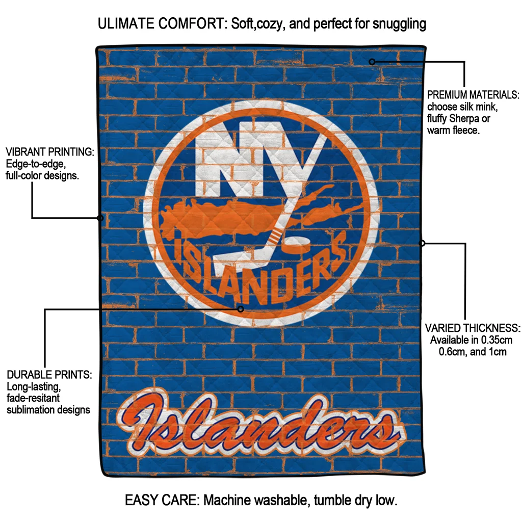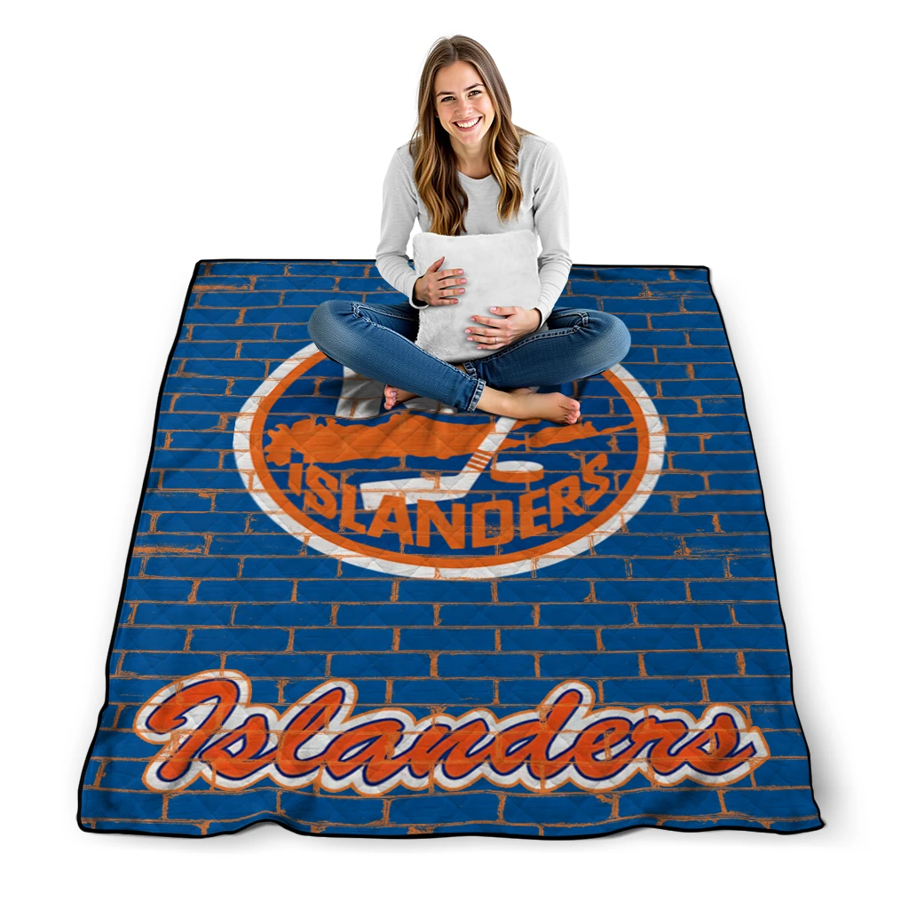 Wrap yourself in warmth and pride with the New York Islanders Brick Grid Blue Quilt Blanket from the New York Islanders Blankets collection at Yes That Blanket. Made from 100% premium quilting-weight polyester blended with a touch of microfiber, this quilt offers a smooth, soft finish you’ll love. Choose between two quilting styles—Stipple or Diagonal—and enjoy the comfort of a cotton-filled layer inside that adds extra coziness for every season. The border is available in classic black or white, giving your design a clean, timeless edge.