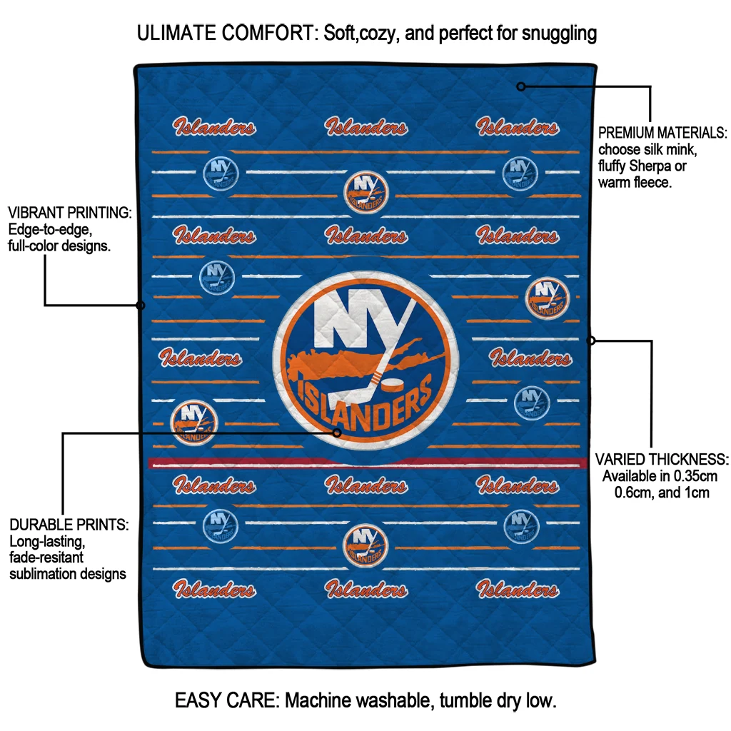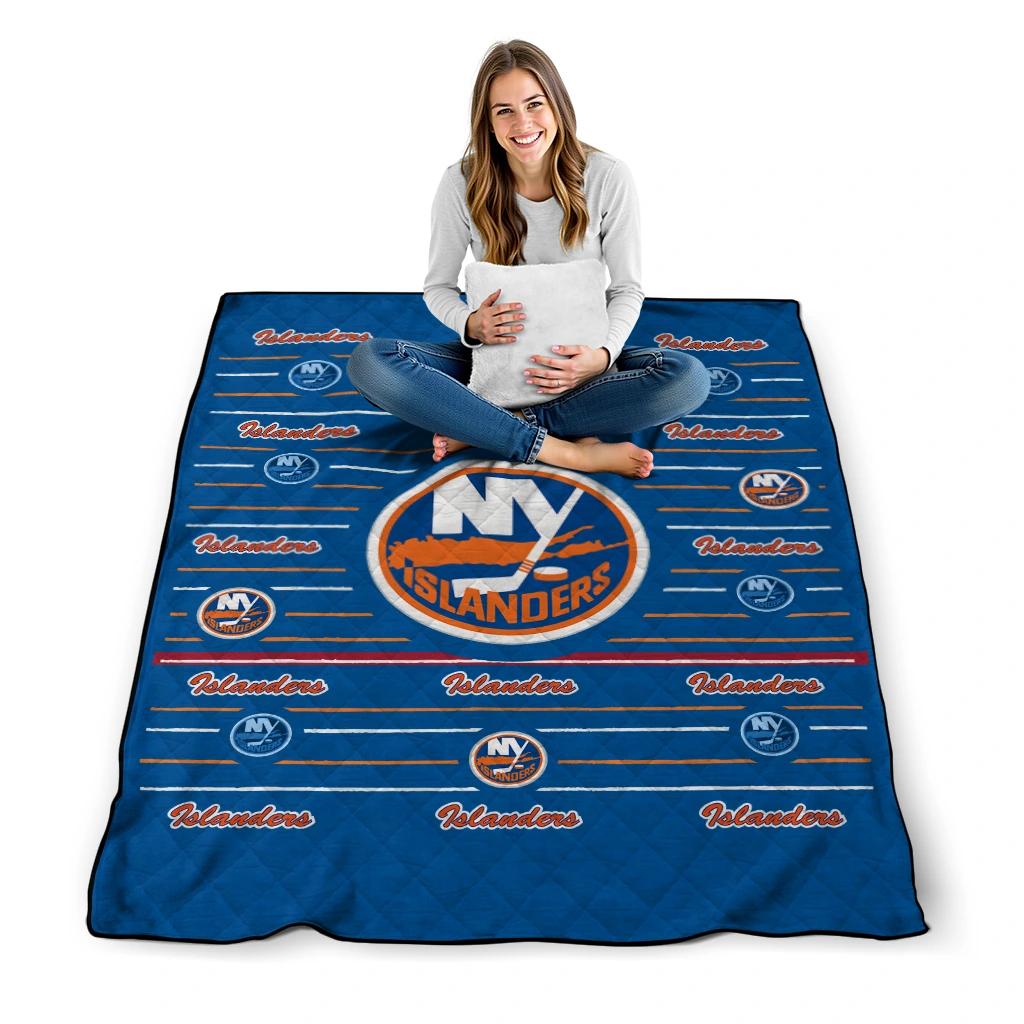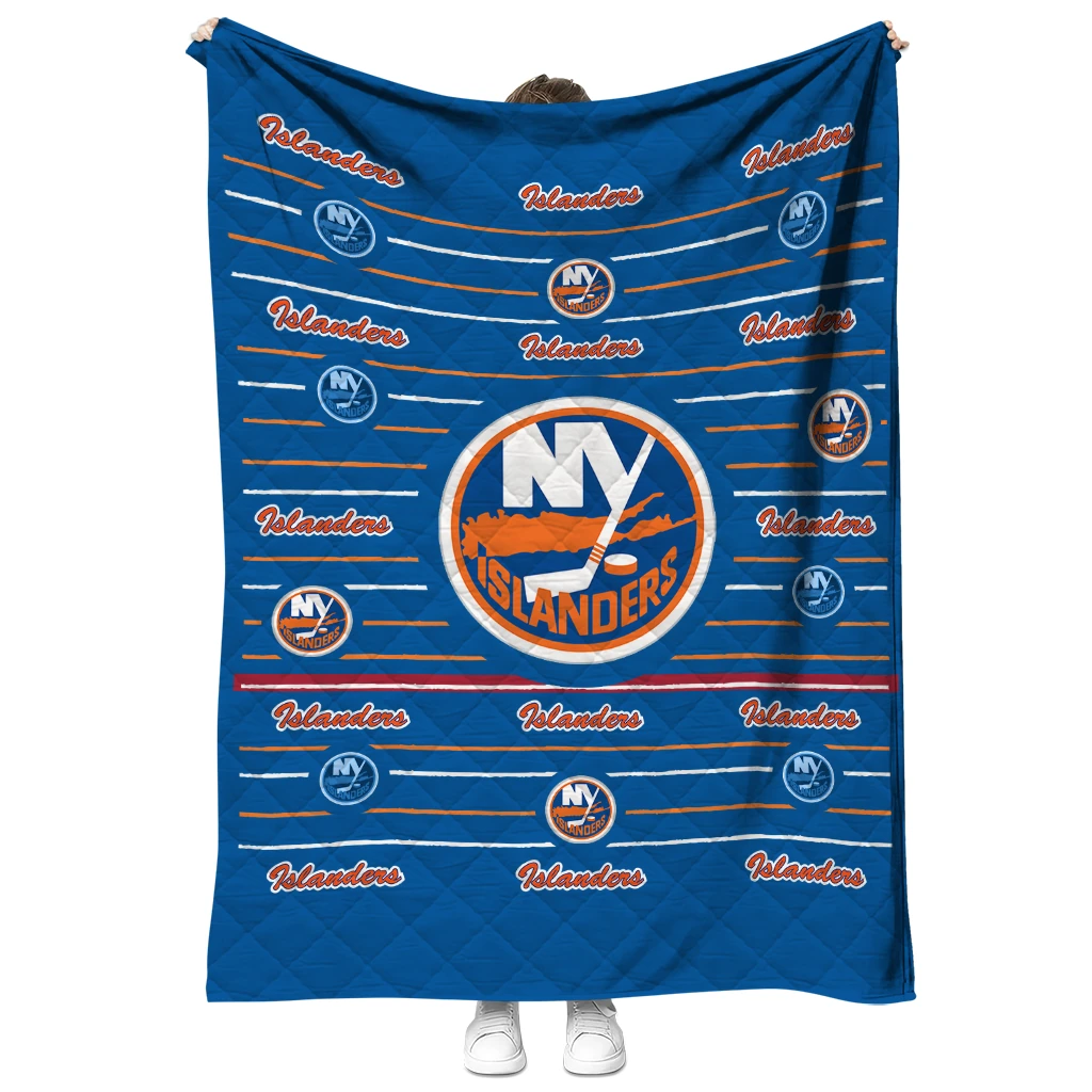 New York Islanders Handdrawn Stripes Blue Quilt Blanket