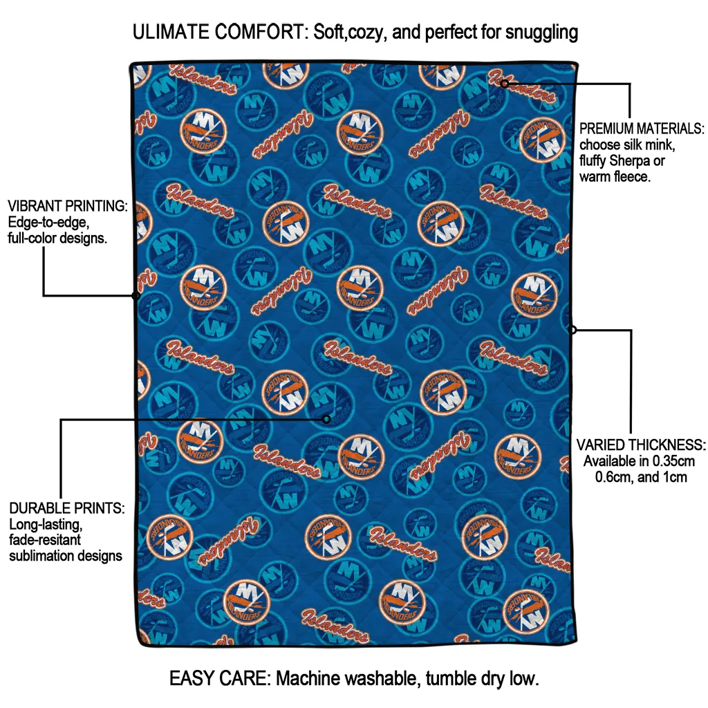 Wrap yourself in warmth and pride with the New York Islanders Solid Classic Blue Quilt Blanket from the New York Islanders Blankets collection at Yes That Blanket. Made from 100% premium quilting-weight polyester blended with a touch of microfiber, this quilt offers a smooth, soft finish you’ll love. Choose between two quilting styles—Stipple or Diagonal—and enjoy the comfort of a cotton-filled layer inside that adds extra coziness for every season. The border is available in classic black or white, giving your design a clean, timeless edge.