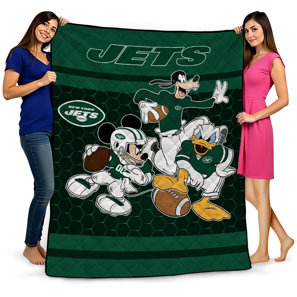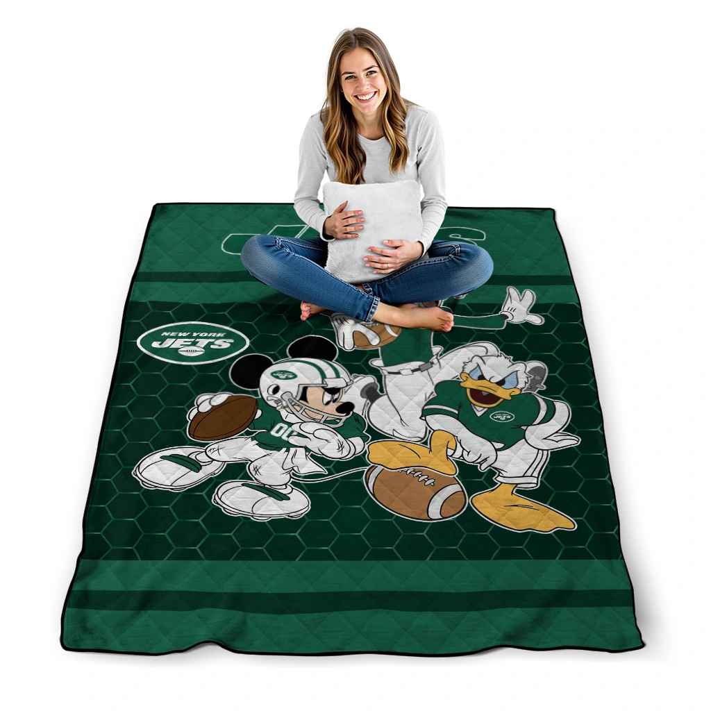 Wrap yourself in warmth and pride with the New York Jets Disney Football Green Quilt Blanket from the New York Jets Blankets collection at Yes That Blanket. Made from 100% premium quilting-weight polyester blended with a touch of microfiber, this quilt offers a smooth, soft finish you’ll love. Choose between two quilting styles—Stipple or Diagonal—and enjoy the comfort of a cotton-filled layer inside that adds extra coziness for every season. The border is available in classic black or white, giving your design a clean, timeless edge.