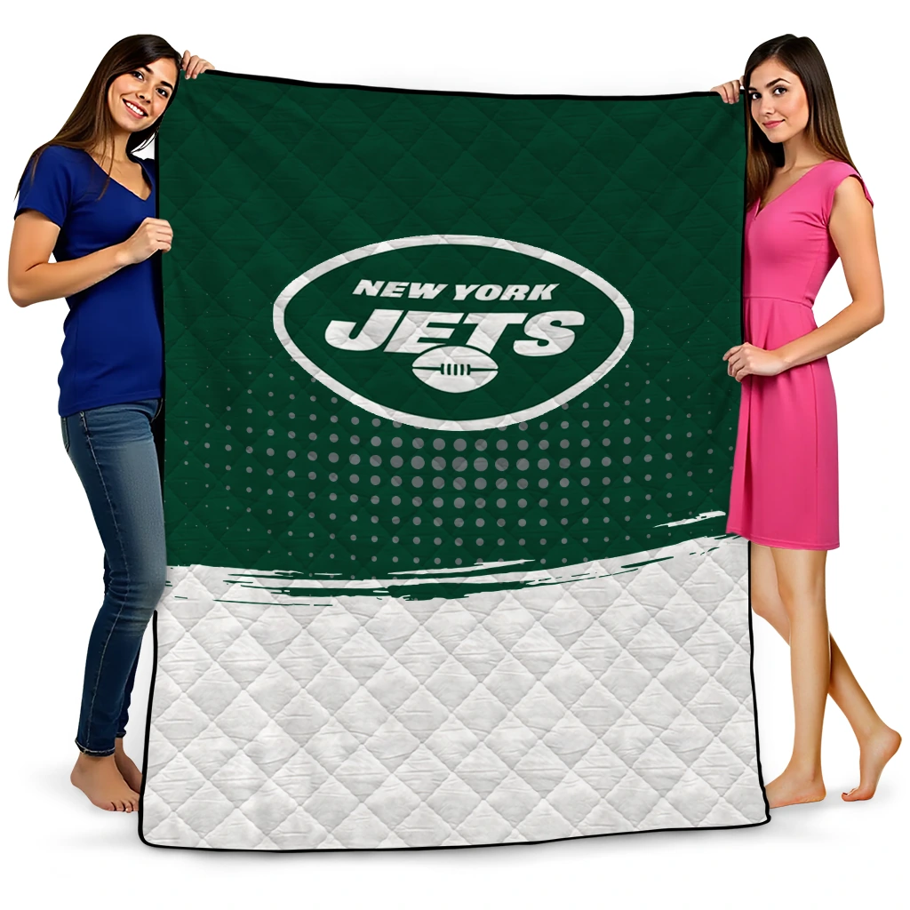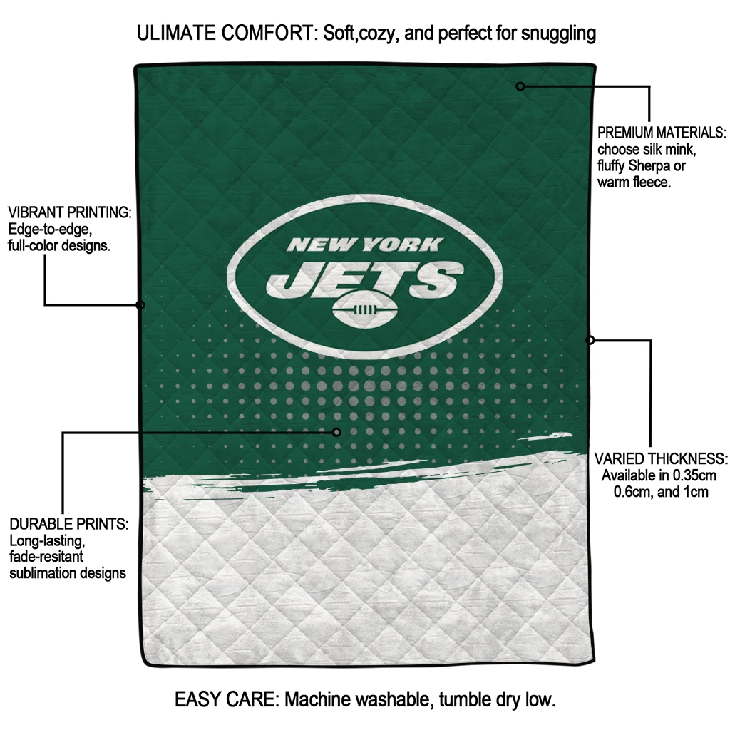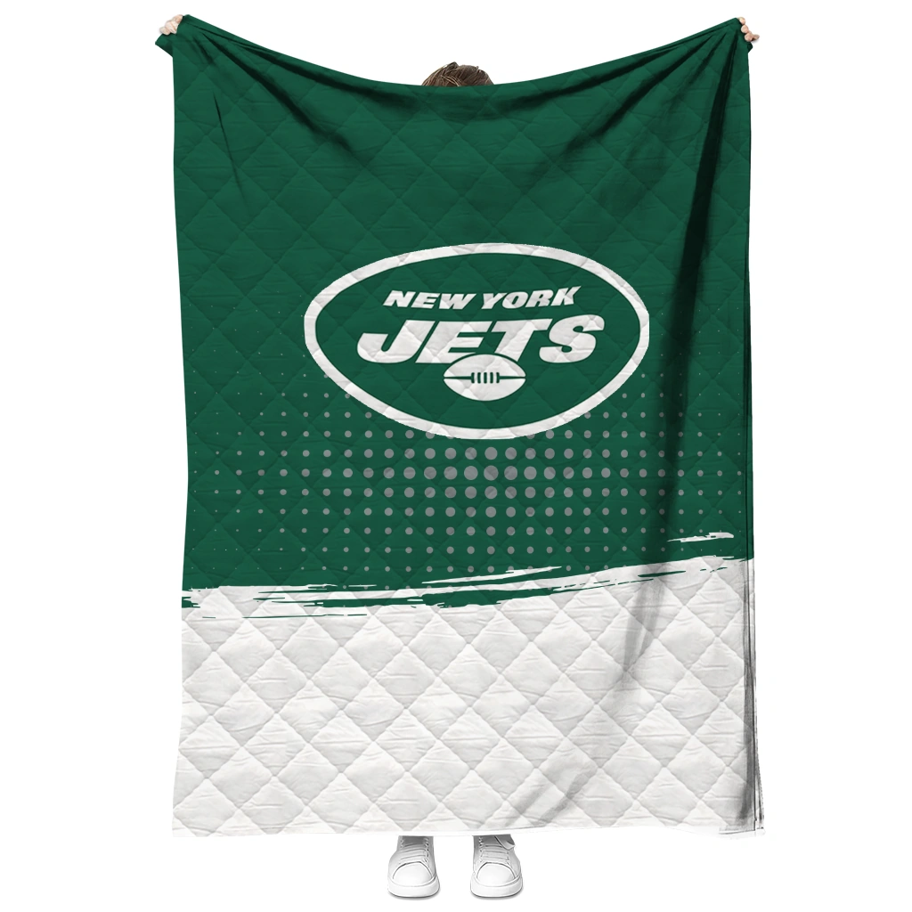 Wrap yourself in warmth and pride with the New York Jets Dot Illusion Green Quilt Blanket from the New York Jets Blankets collection at Yes That Blanket. Made from 100% premium quilting-weight polyester blended with a touch of microfiber, this quilt offers a smooth, soft finish you’ll love. Choose between two quilting styles—Stipple or Diagonal—and enjoy the comfort of a cotton-filled layer inside that adds extra coziness for every season. The border is available in classic black or white, giving your design a clean, timeless edge.