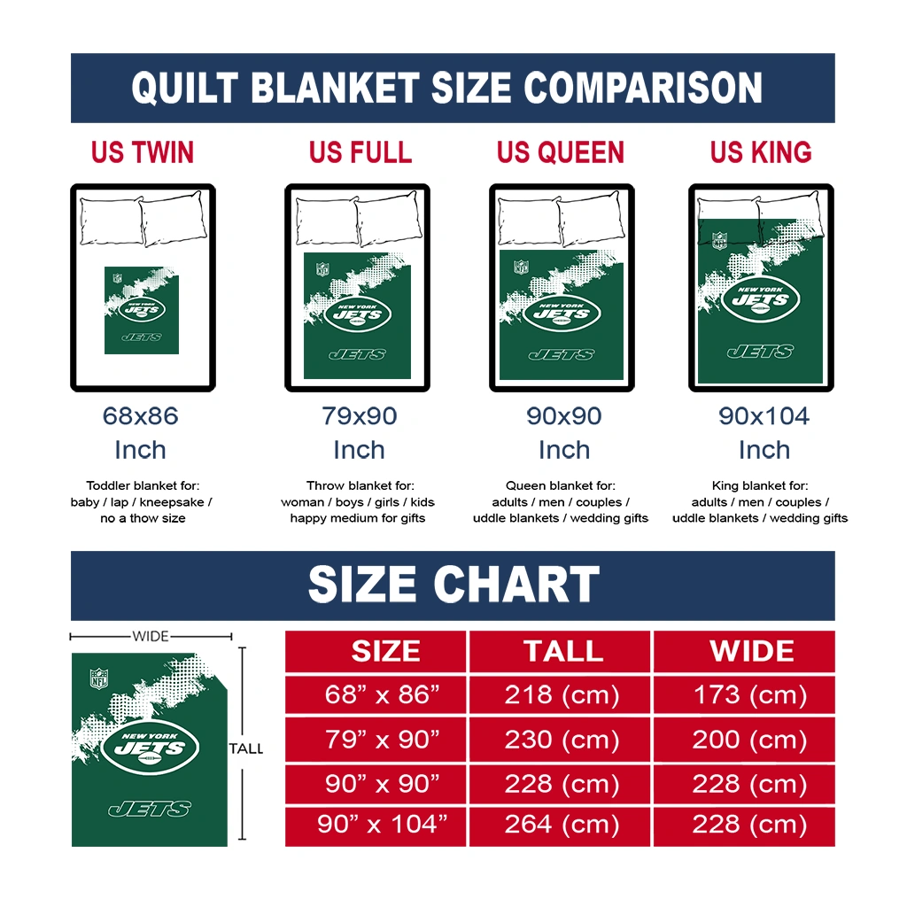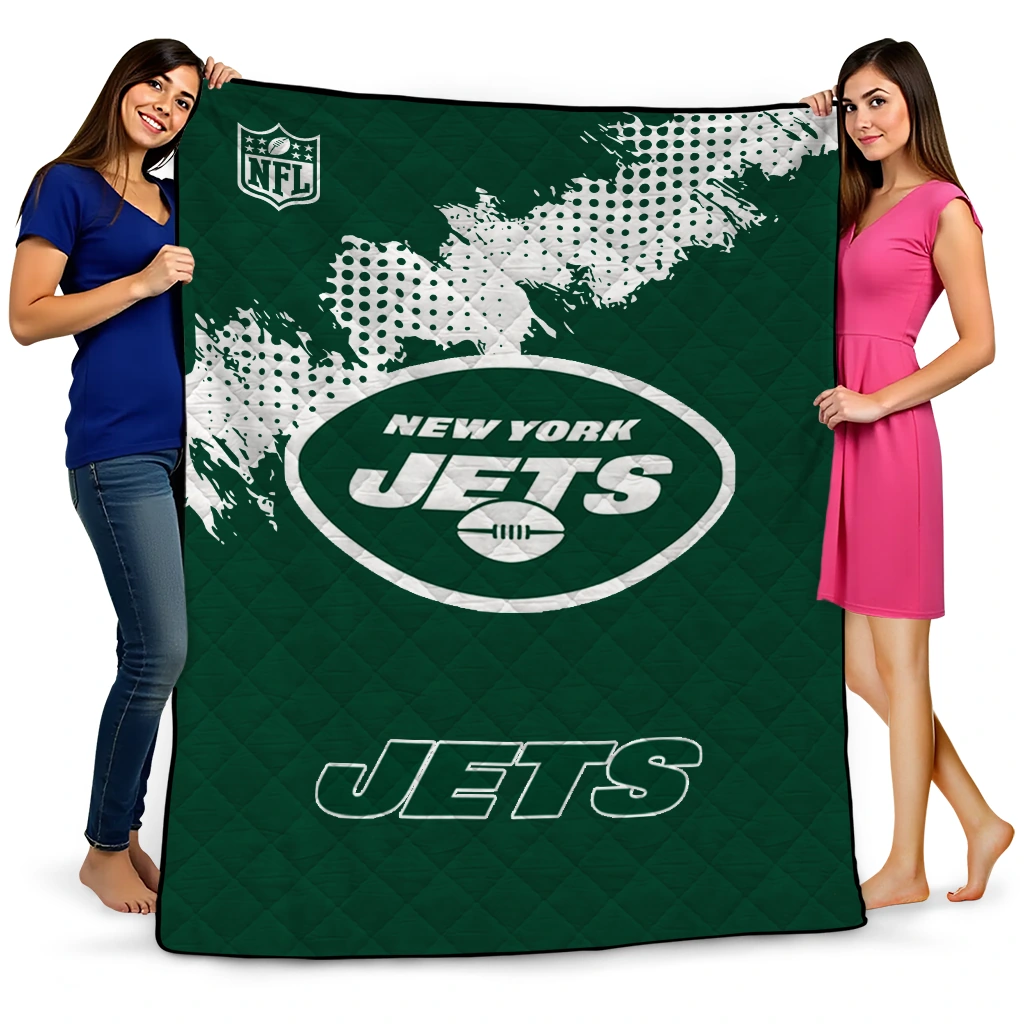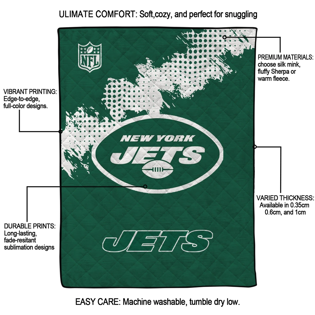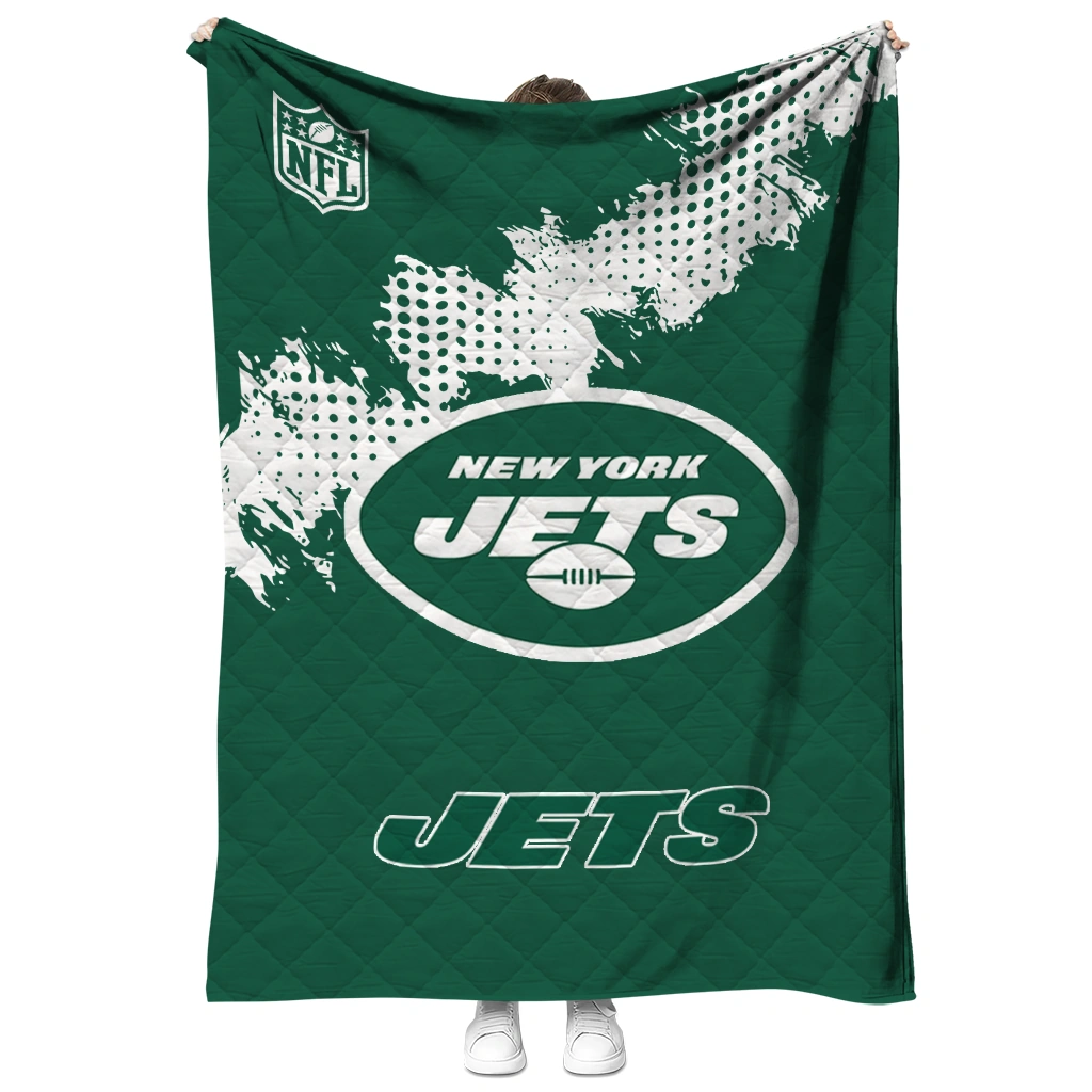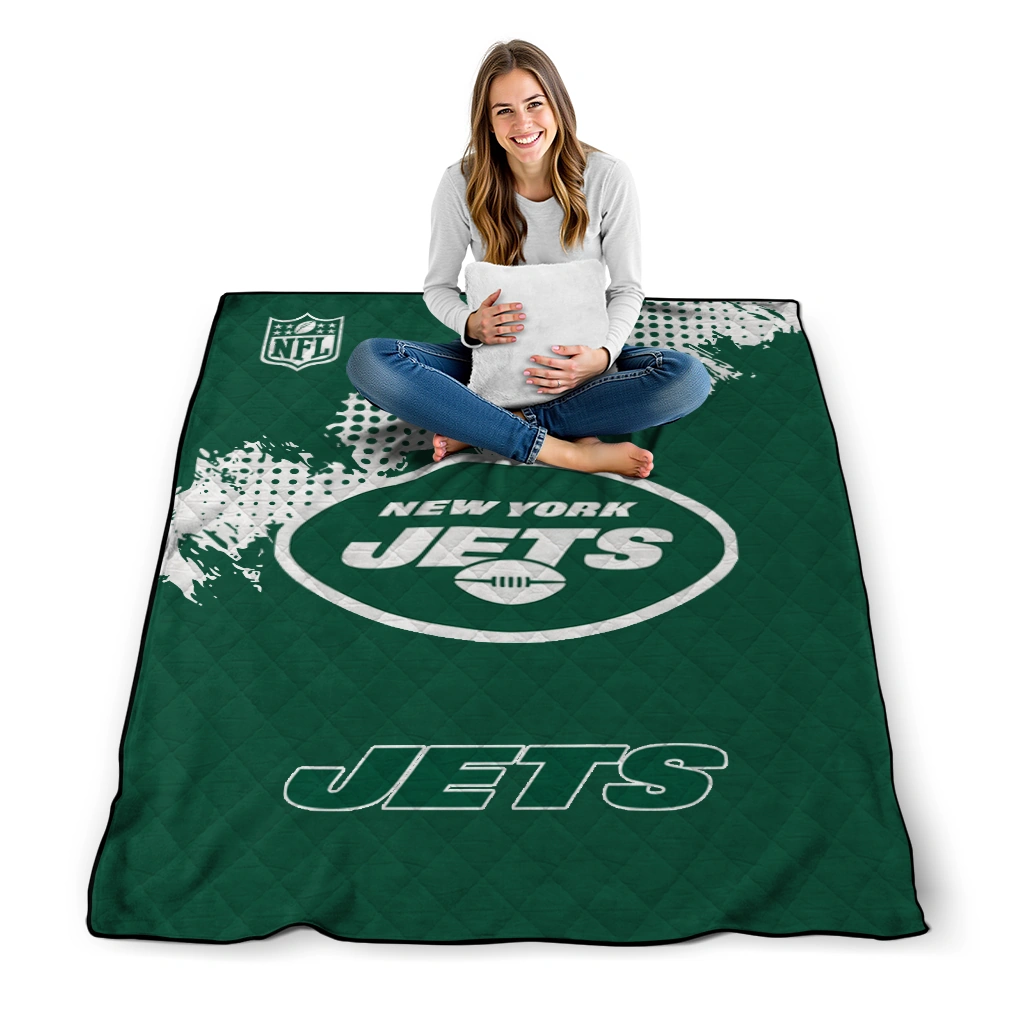 Wrap yourself in warmth and pride with the New York Jets Shield Badge Green Quilt Blanket from the New York Jets Blankets collection at Yes That Blanket. Made from 100% premium quilting-weight polyester blended with a touch of microfiber, this quilt offers a smooth, soft finish you’ll love. Choose between two quilting styles—Stipple or Diagonal—and enjoy the comfort of a cotton-filled layer inside that adds extra coziness for every season. The border is available in classic black or white, giving your design a clean, timeless edge.