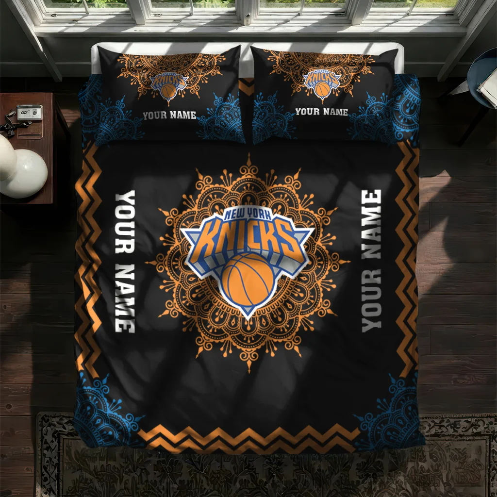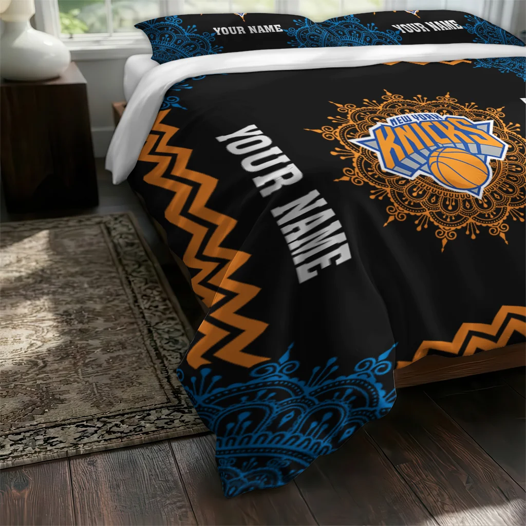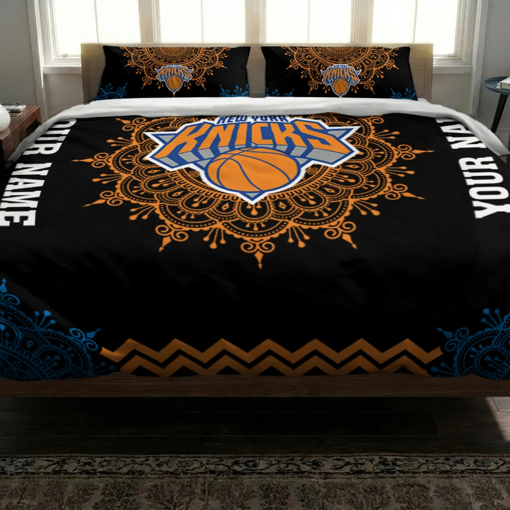 New York Knicks Bedding Set – Personalized Mandala Lacework Black Orange