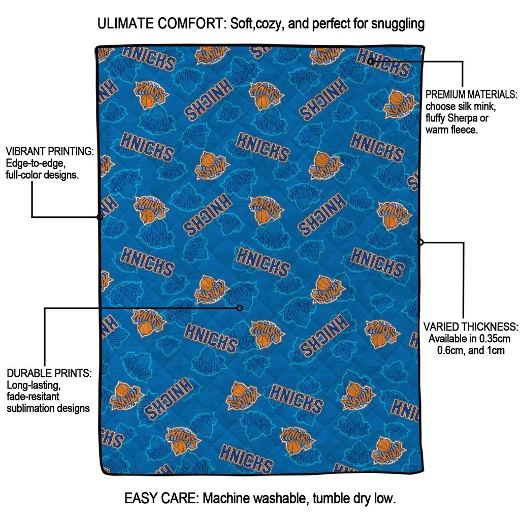 Wrap yourself in warmth and pride with the New York Knicks Solid Classic Blue Quilt Blanket from the New York Knicks Blankets collection at Yes That Blanket. Made from 100% premium quilting-weight polyester blended with a touch of microfiber, this quilt offers a smooth, soft finish you’ll love. Choose between two quilting styles—Stipple or Diagonal—and enjoy the comfort of a cotton-filled layer inside that adds extra coziness for every season. The border is available in classic black or white, giving your design a clean, timeless edge.